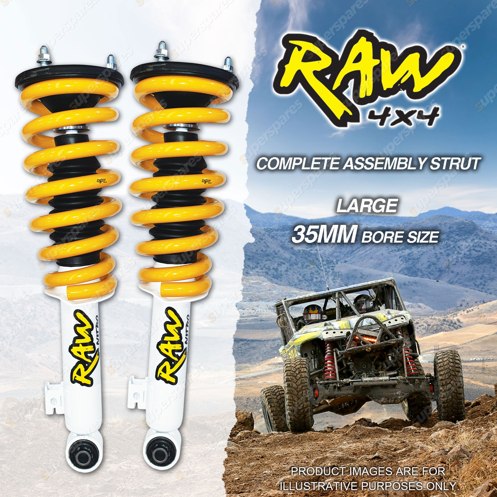 | The RAW Predator range brings together on road prowess and off road durability into a fast acting monotube design. Manufactured in Australia the Predator delivers that elusive feeling of comfort and control. If you use your 4WD for day to day running around and off road adventures on the weekend,the Predator is what you are looking for. | The RAW Nitro shock absorber and strut range will improve ride quality, reduce body roll and increase vehicle stability and control. Well suited to the recreational 4WDriver who is looking to lift the vehicle and improve overall suspension performance. | The RAW Nitro Max range is the heavy weight contender of shock absorbers, specifically designed for heavy coil spring and torsion bar vehicles. Nitro Max shocks use a proven truck shock absorber design with highly tuned valving for 4WD applications carrying heavy loads and travel demanding terrain. Recommend for vehicles used in mining, long distant touring and heavy duty applications. |