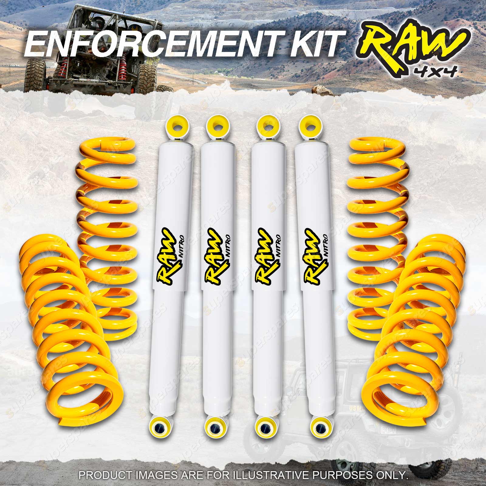 ![]() | COIL SPRING A set of RAW 4x4 coil springs will significantly improve the ability of your 4x4 to carry this additional weight whilst enhancing the vehicles performance in terms of stability, load carrying and towing capabilities. |