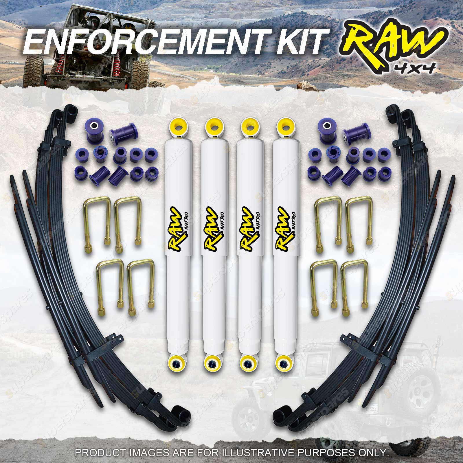 | REAR | Raw 4x4 Nitro Shock Absorber | 2 | 35mm Bore Nitrogen Gas Charged |