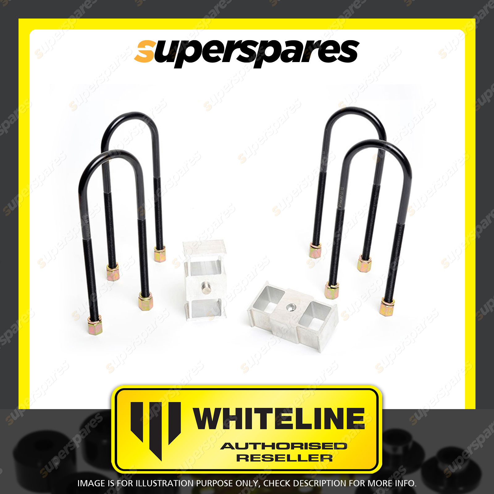 | Contents : Whiteline Rear Lowering block - kit Warranty : 3 Year / 60,000Kms Kit Contents : 2 Blocks, 4 U-Bolts, 4 Washers, 4 Nuts, Install Guide |