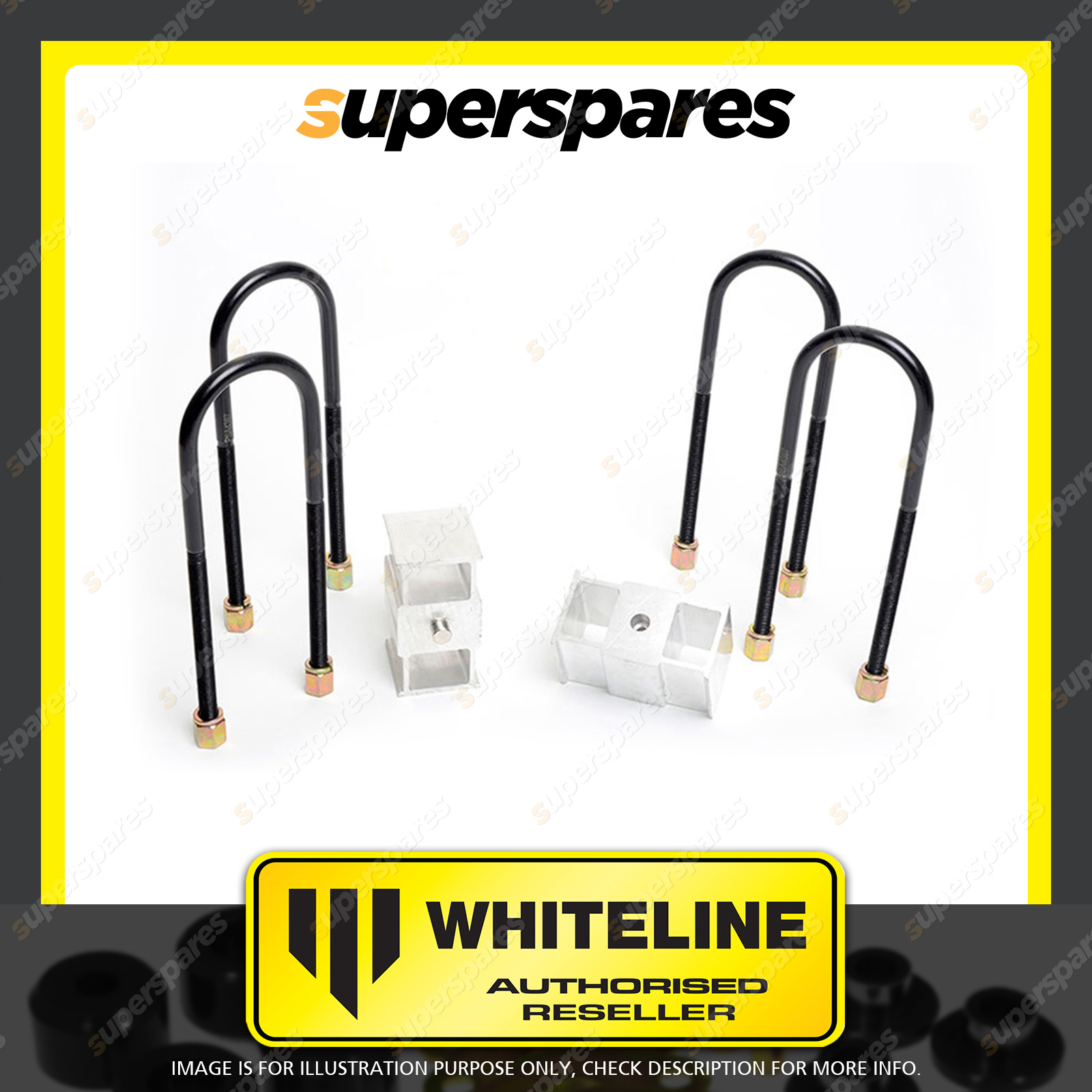 | Contents : Whiteline Rear Lowering block - kit Warranty : 3 Year / 60,000Kms Kit Contents : 2 Blocks, 4 U-Bolts, 4 Washers, 4 Nuts, Install Guide |