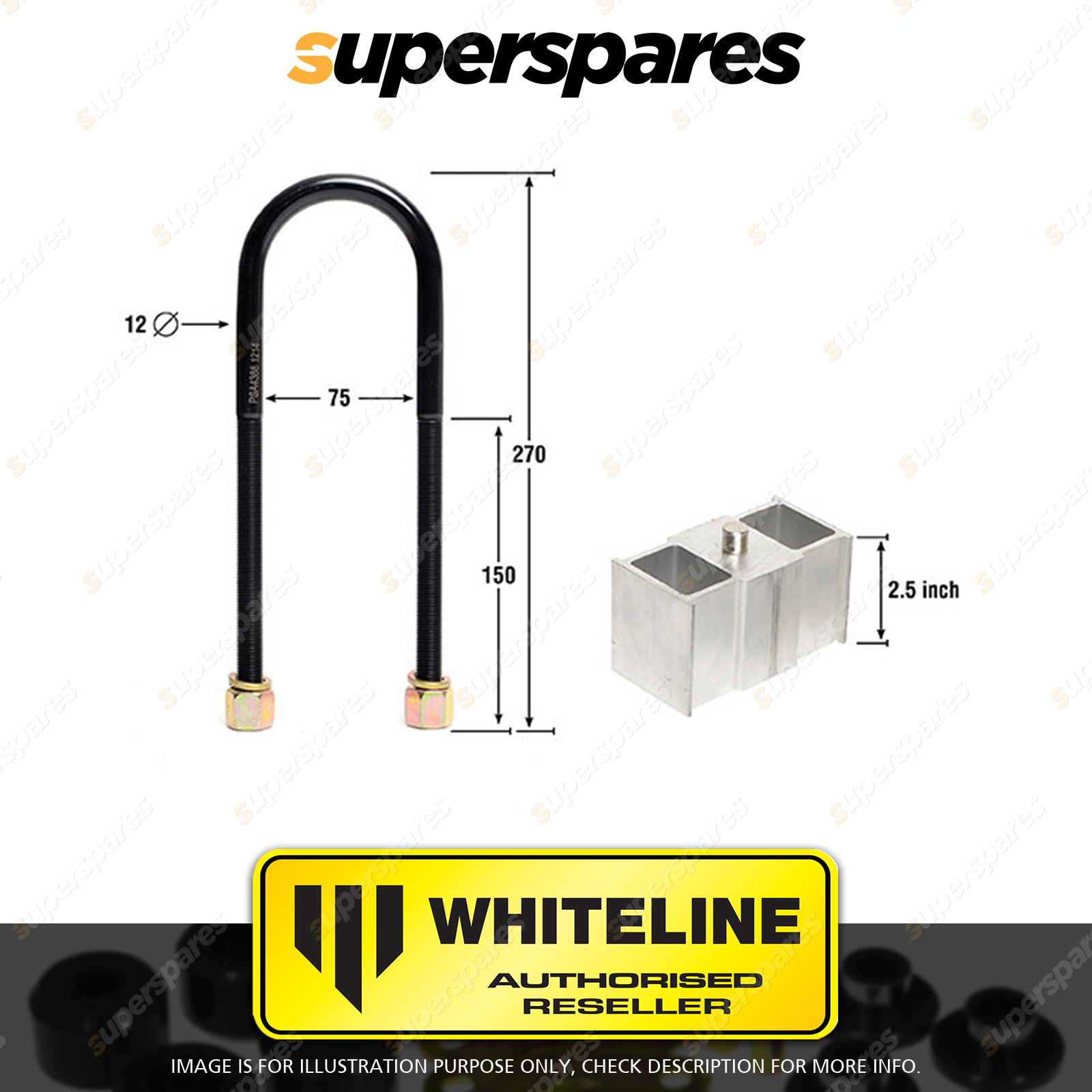 | Contents : Whiteline Rear Lowering block - kit Warranty : 3 Year / 60,000Kms Kit Contents : 2 Blocks, 4 U-Bolts, 4 Washers, 4 Nuts, Install Guide |