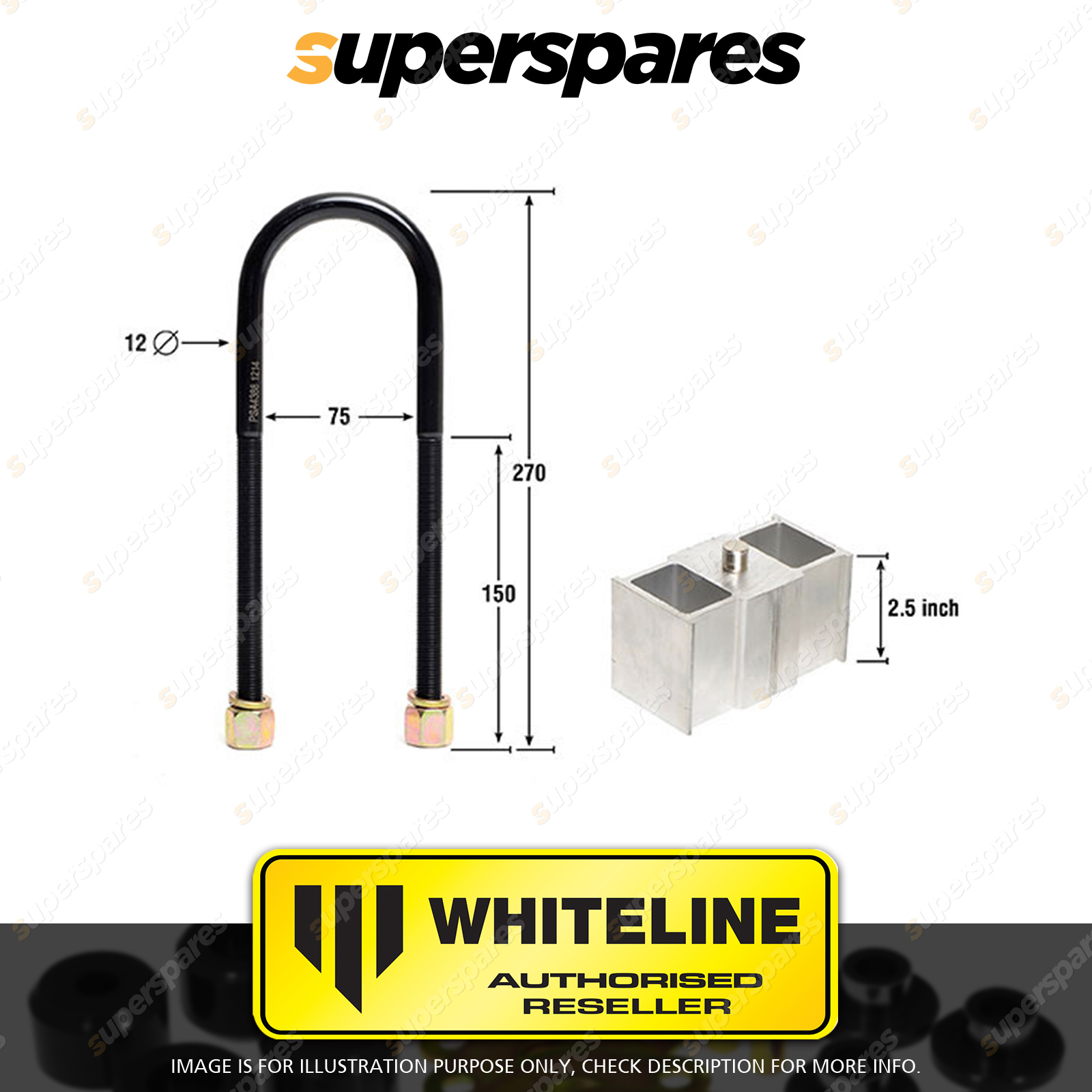 | Contents : Whiteline Rear Lowering block - kit Warranty : 3 Year / 60,000Kms Kit Contents : 2 Blocks, 4 U-Bolts, 4 Washers, 4 Nuts, Install Guide |