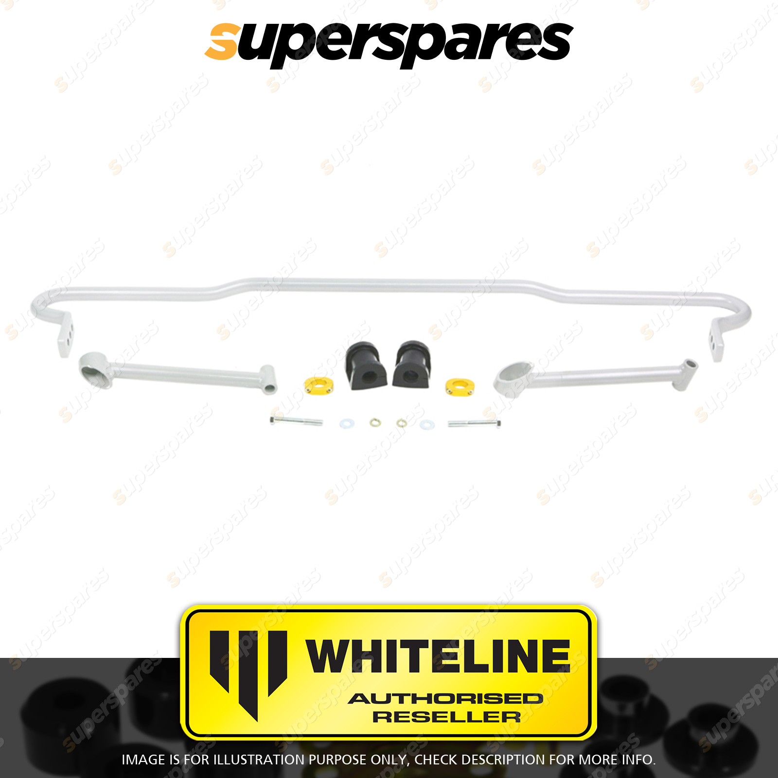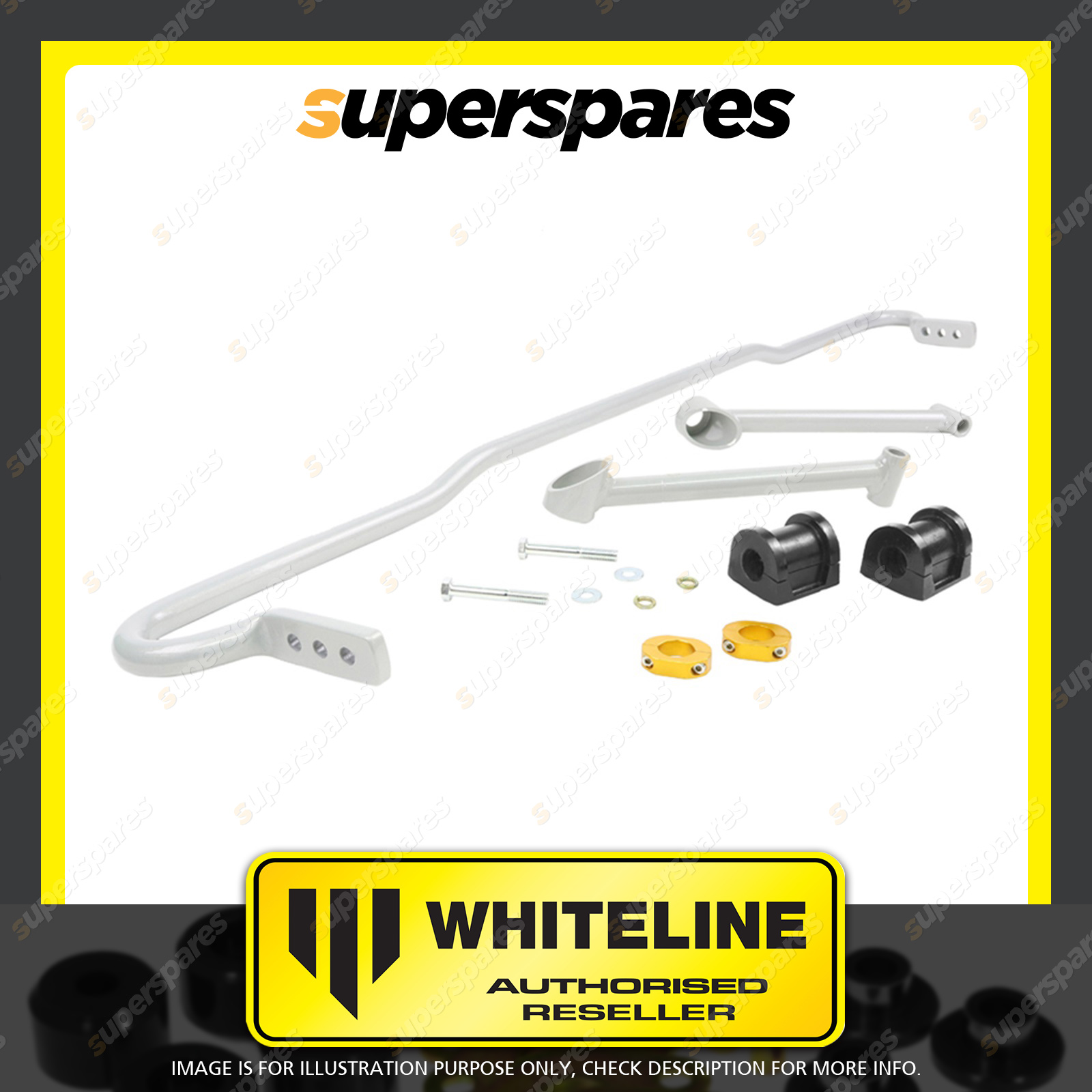 | Contents : Whiteline Rear Sway bar Warranty : 3 Year / 60,000Kms Kit Contents : 1 Sway Bar, 2 Bushings, 2 Braces, 2 Lateral Locks, 2 Bolts, 4 Washers, Install Guide, Grease | Kit Specifications : Diameter(mm) : 22mm |