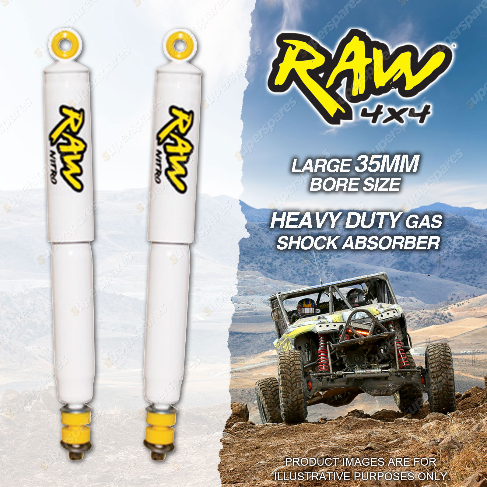 Pair Rear 50mm Lift RAW 4x4 Nitro Shock Absorbers
