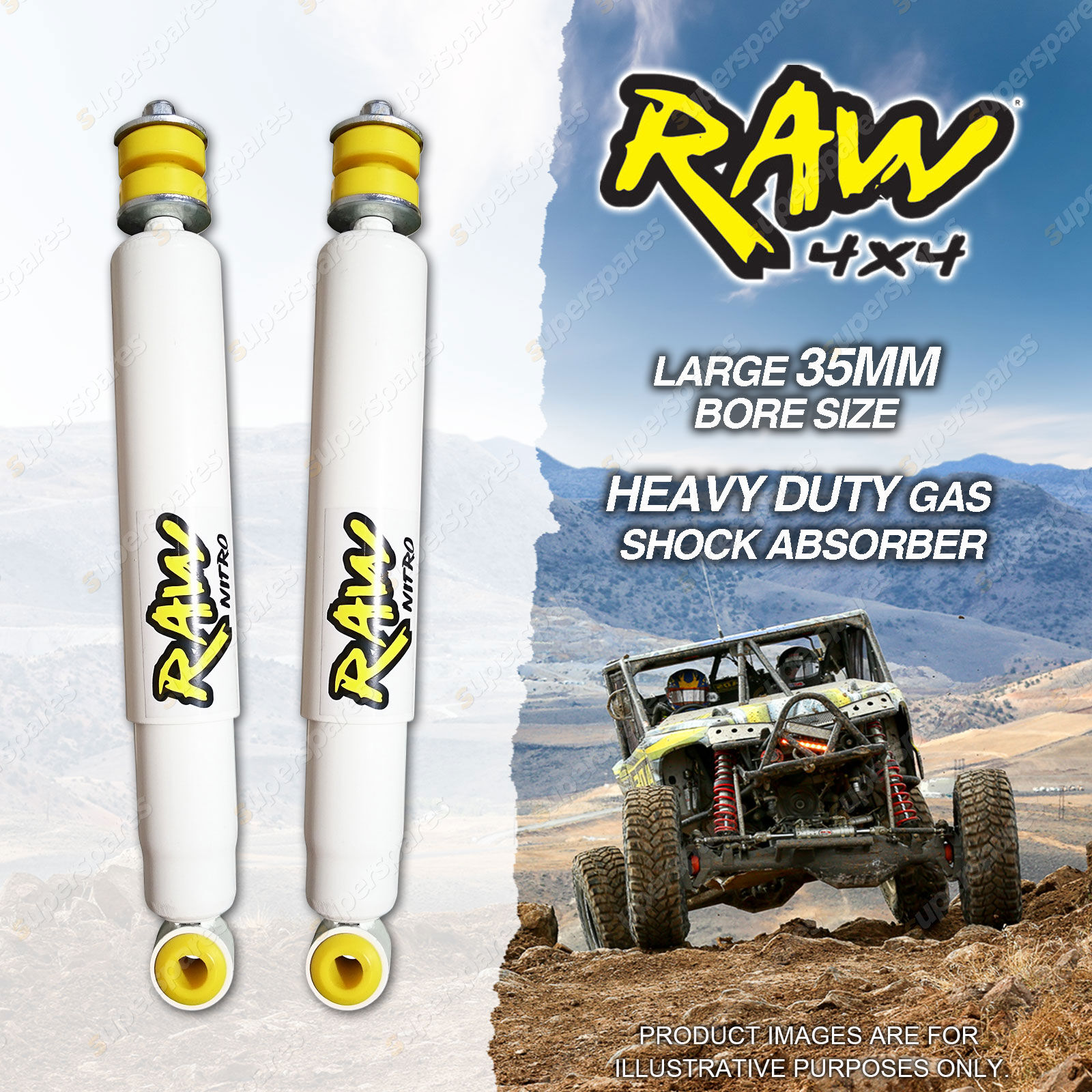 Pair Rear 50mm Lift RAW 4x4 Nitro Shock Absorbers