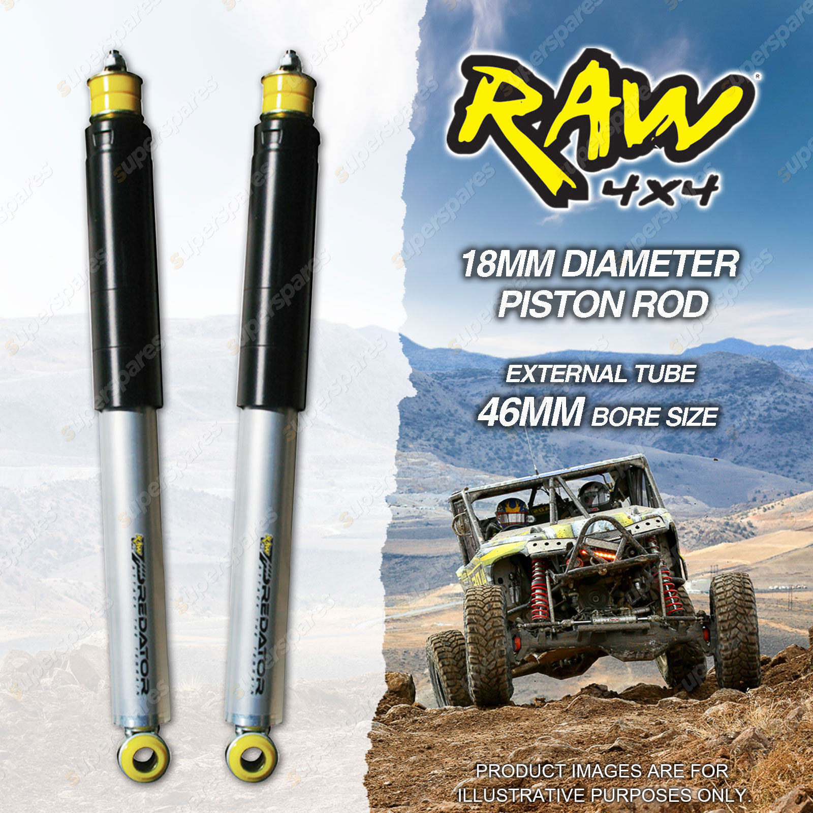 Pair Rear 50mm Lift RAW 4x4 Predator Shock Absorbers