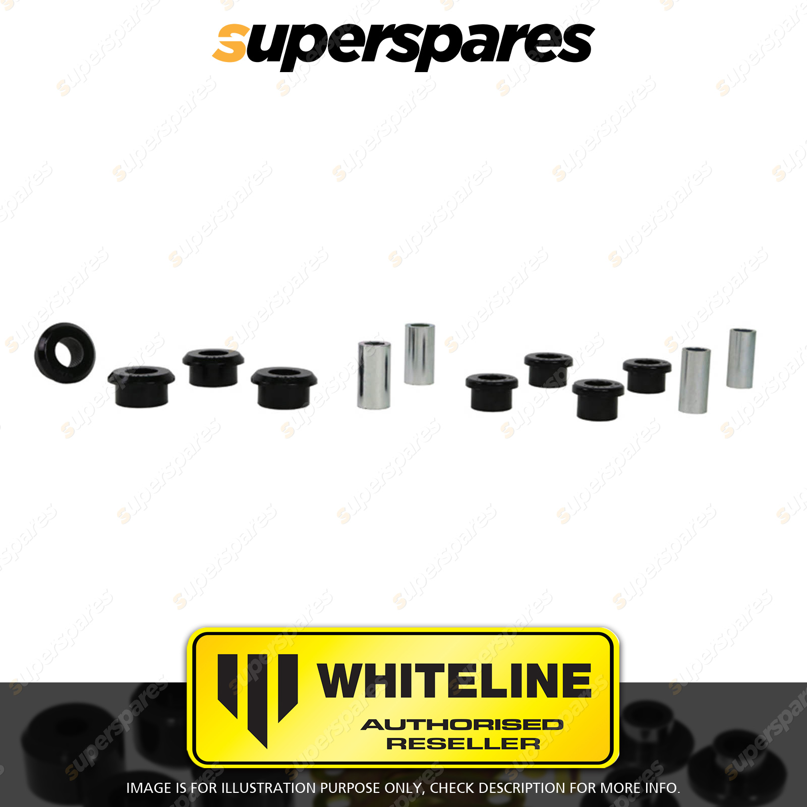 | Contents : Whiteline Rear Control arm - lower Front bushing Warranty : 3 Year / 60,000Kms Kit Contents : 8 Bushings, 4 Tubes, Grease |