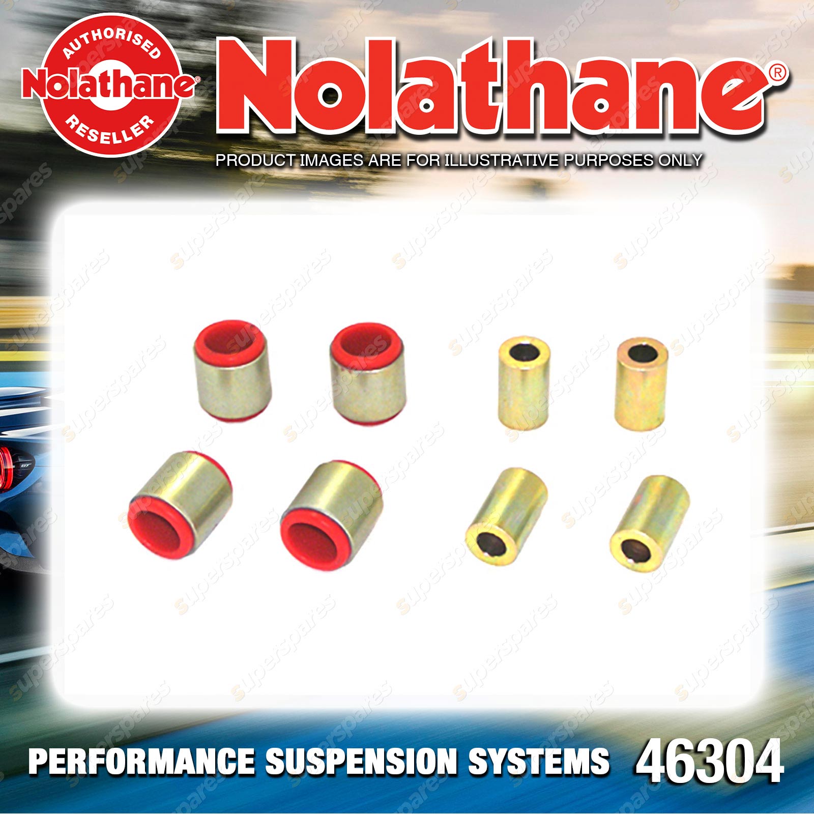 | Contents : Nolathane Rear Control arm - lower front inner and outer bushing Warranty : 3 Year / 60,000Kms Kit Contents : 4 Shell Bushings, 4 Tubes, Grease |