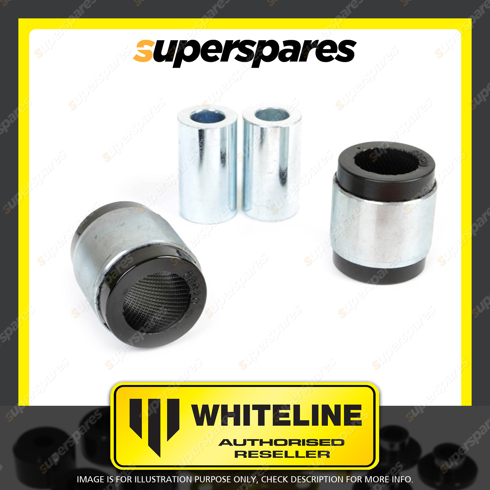 | Contents : Whiteline Rear Control arm - lower Front outer bushing Warranty : 3 Year / 60,000Kms Kit Contents : 2 Shell Bushings, 2 Tubes, Grease |