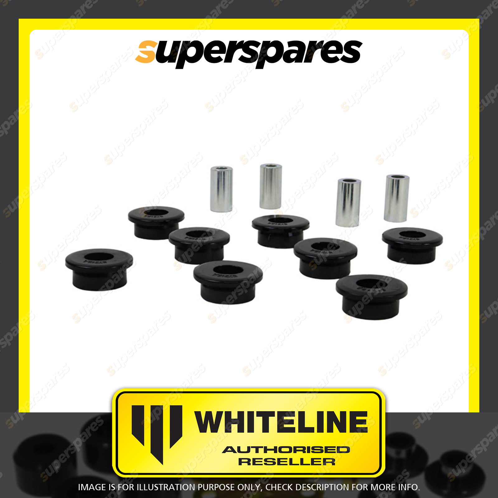| Contents : Whiteline Rear Control arm - lower outer bushing Warranty : 3 Year / 60,000Kms Kit Contents : 8 Bushings, 4 Tubes, Grease |