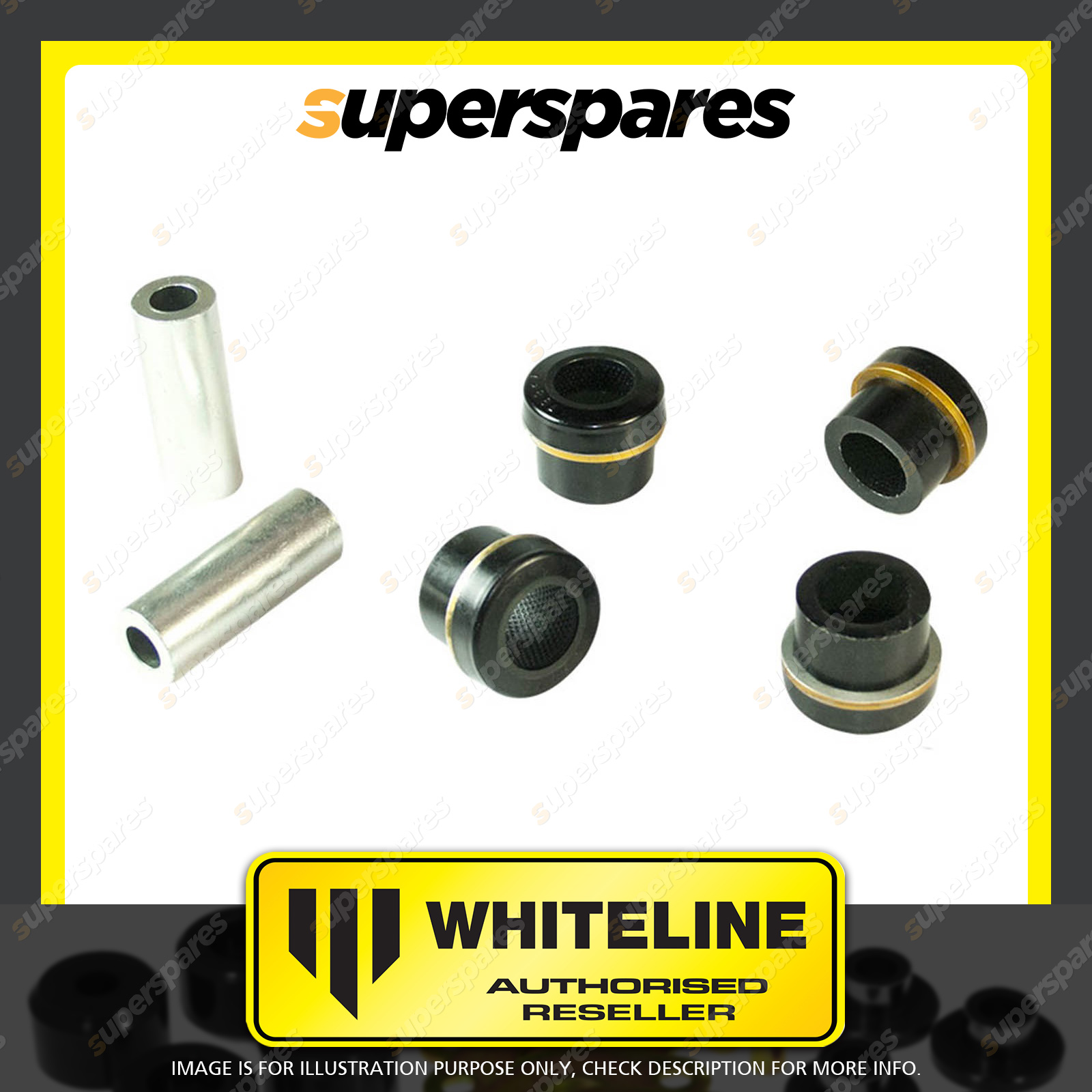 | Contents : Whiteline Rear Control arm - lower Rear inner bushing Warranty : 3 Year / 60,000Kms Kit Contents : 4 Bushings, 2 Tubes, Grease |