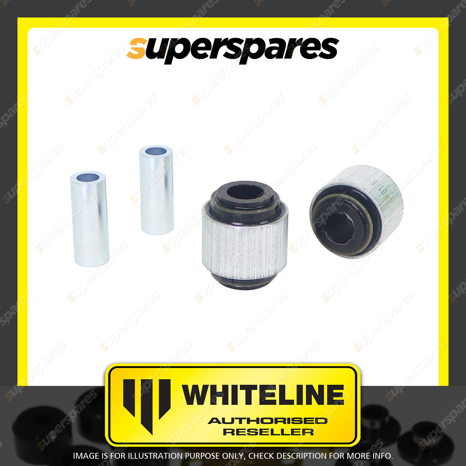| Contents : Whiteline Rear Control Arm Lower Rear - Inner Bushing Kit Warranty : Lifetime Warranty Kit Contents : 2 Shell Bushings, 2 Tubes |
