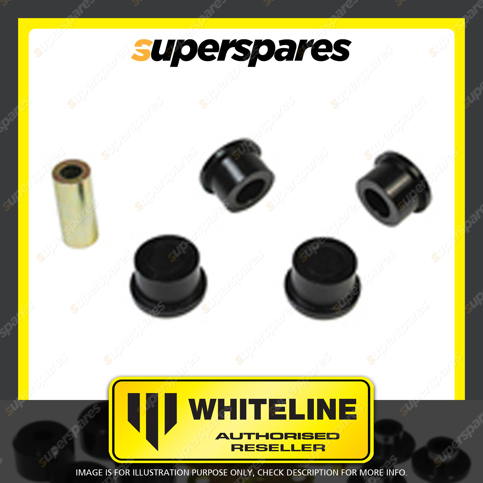 | Contents : Whiteline Rear Control arm - lower Rear outer bushing Warranty : 3 Year / 60,000Kms Kit Contents : 4 Bushings, 2 Tubes, Grease |
