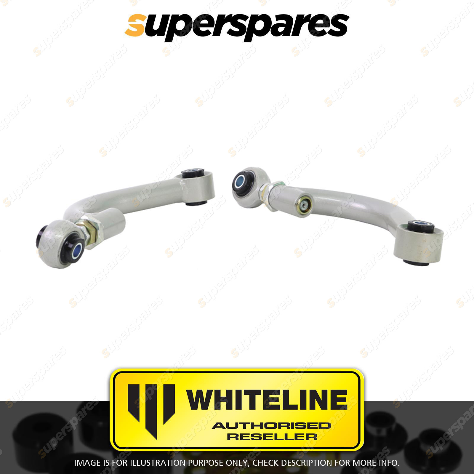 Contents : Whiteline Control Arm Upper - Arm Position : Rear Warranty : 3 Year / 60,000Kms Kit Contents : 2 Arms, Install Guide |