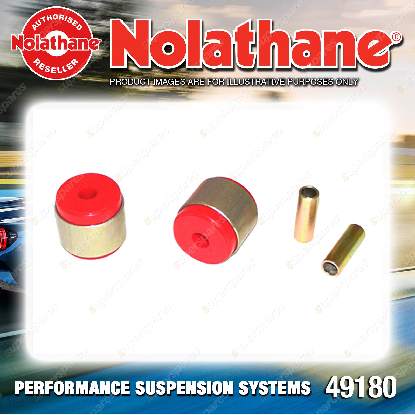 | Contents : Nolathane Rear Differential - mount support outrigger bushing Warranty : 3 Year / 60,000Kms Kit Contents : 2 Shell Bushings, 2 Tubes, Install Guide, Grease |