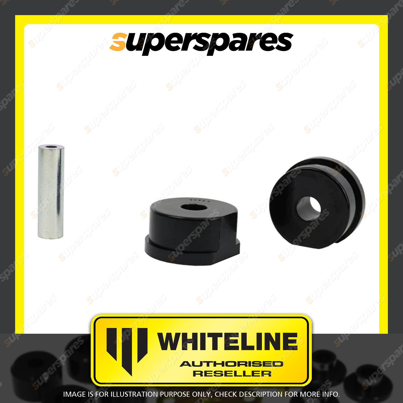 | Contents : Whiteline Rear Gearbox - mount bushing Warranty : 3 Year / 60,000Kms Kit Contents : 2 Bushings, 1 Tube, Grease |