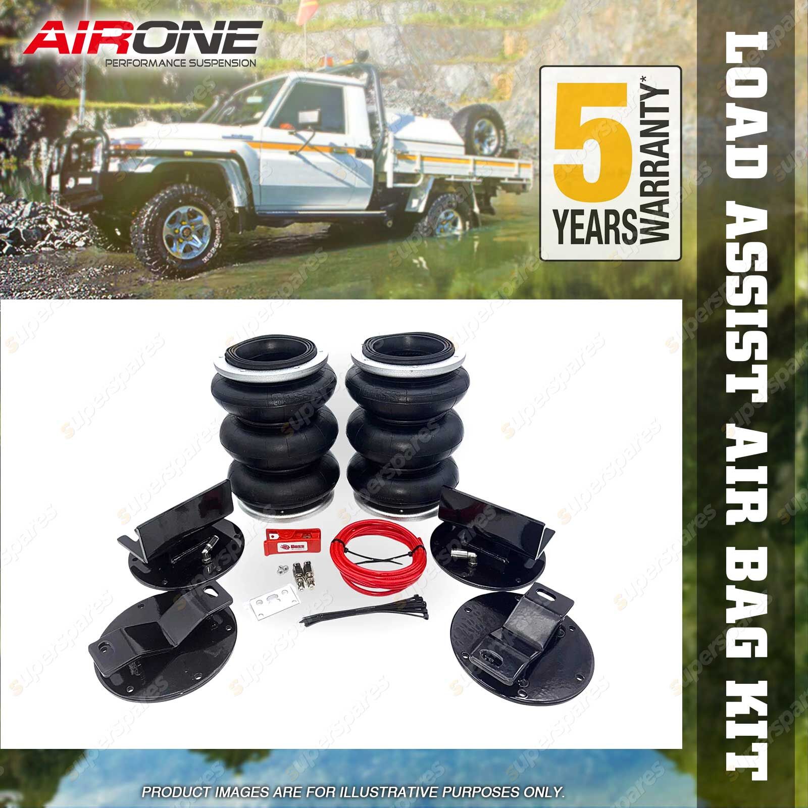 ![]() | The Airone Extreme series airbags are rated at 2600lb or 1186kg per side and have been government approved tested to over 750psi. Average dual cab ute will run around 15-45psi depending on load. NOTE: This kit is not suitable for a lowered vehicle due to the limited space between the chassis and axle. |
