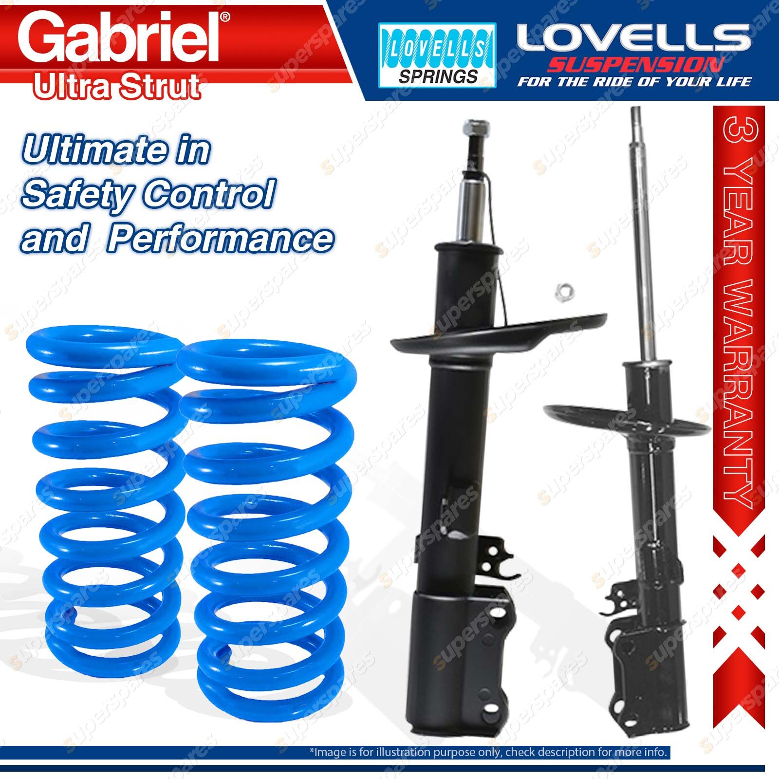 Contents: 2 x Gabriel Ultra Strut Shock Absorbers - Gas 2 x Heavy Duty Standard Height Lovells Springs Suit: Lexus ES300 VCV10R Sedan 6 Cyl with front rotating spring seat 6/92-10/96 Lexus ES300 VCV10R Sedan 6 Cyl with front fixed spring seat 6/92-10/96 |