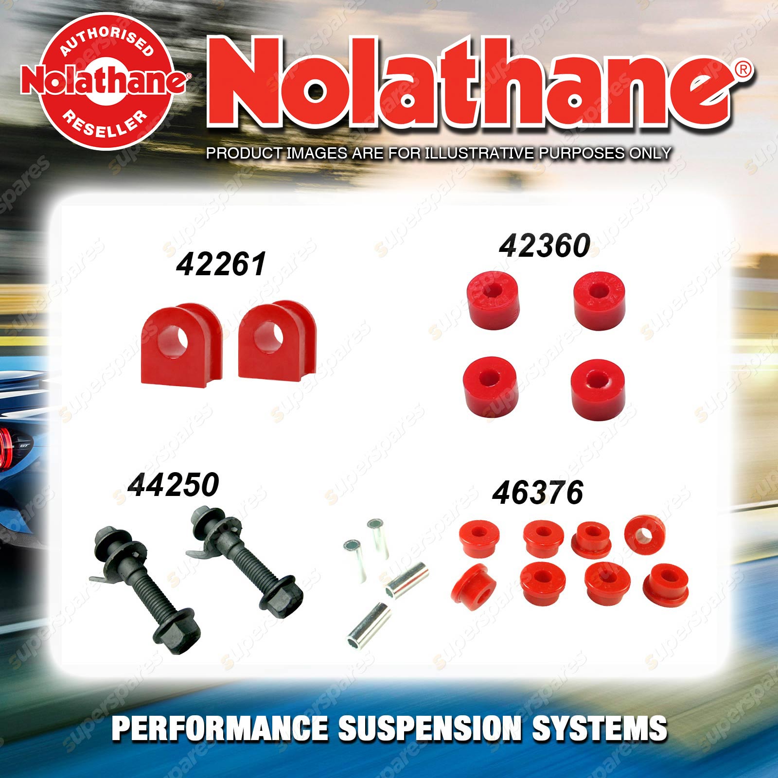 | Nolathane offers a complete range of suspension system.And Nolathane suspension bushing synchronise your suspension system for optimal safety, hangdling and performance .Whether you intend to build a Street Machine, Fast 4, go bush or simply drive to work,suspension bushes are the link between your vehicle and it's springs,struts and shock absorbers.Suspension bushes provide the movement and/or mounting points in your vehicle's suspension system. |