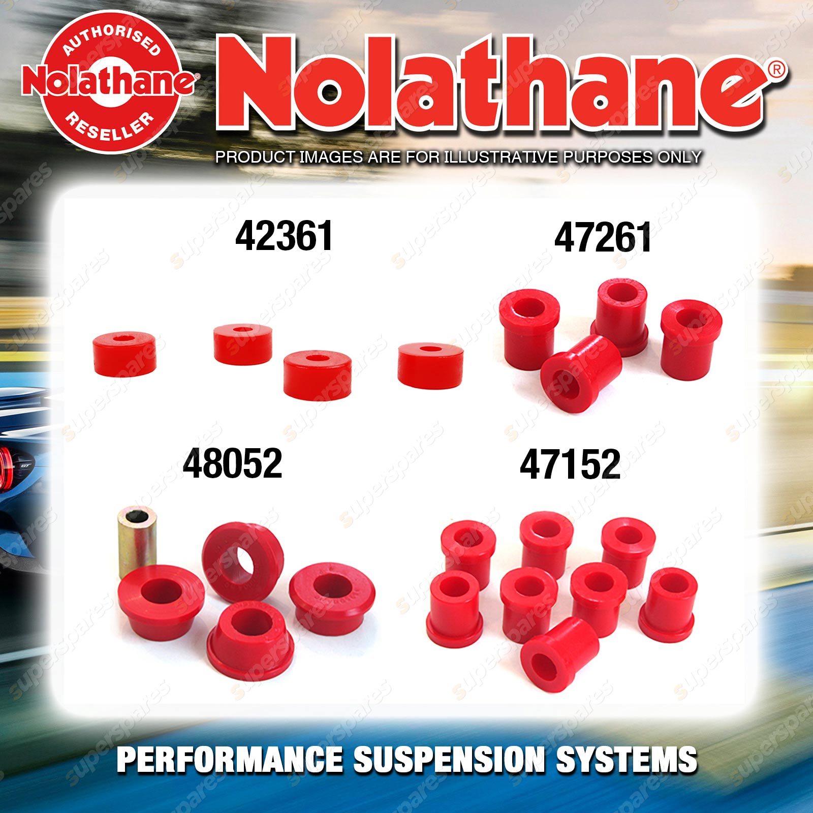 | Nolathane offers a complete range of suspension system.And Nolathane suspension bushing synchronise your suspension system for optimal safety, hangdling and performance .Whether you intend to build a Street Machine, Fast 4, go bush or simply drive to work,suspension bushes are the link between your vehicle and it's springs,struts and shock absorbers.Suspension bushes provide the movement and/or mounting points in your vehicle's suspension system. |