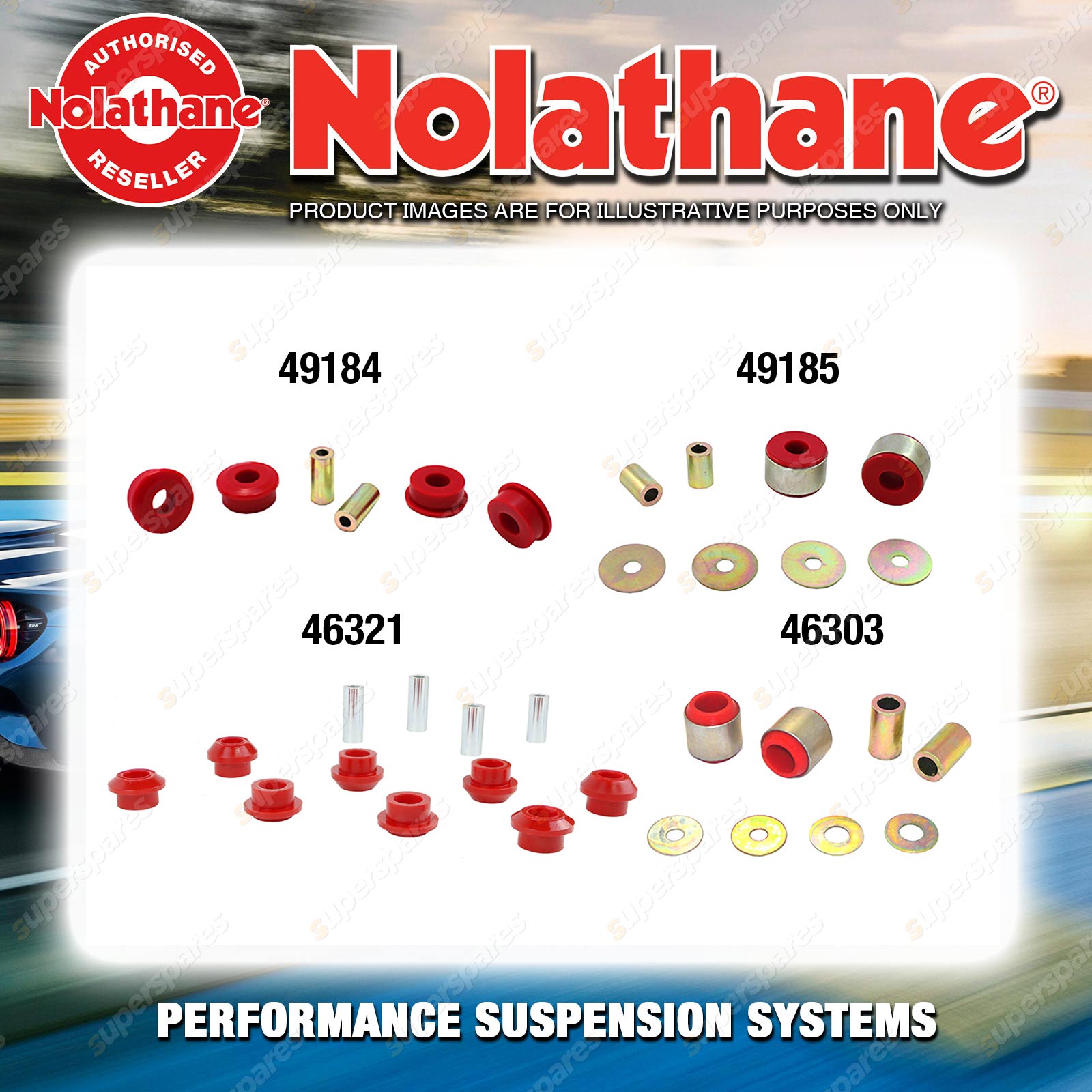 | Nolathane offers a complete range of suspension system.And Nolathane suspension bushing synchronise your suspension system for optimal safety, hangdling and performance .Whether you intend to build a Street Machine, Fast 4, go bush or simply drive to work,suspension bushes are the link between your vehicle and it's springs,struts and shock absorbers.Suspension bushes provide the movement and/or mounting points in your vehicle's suspension system. |