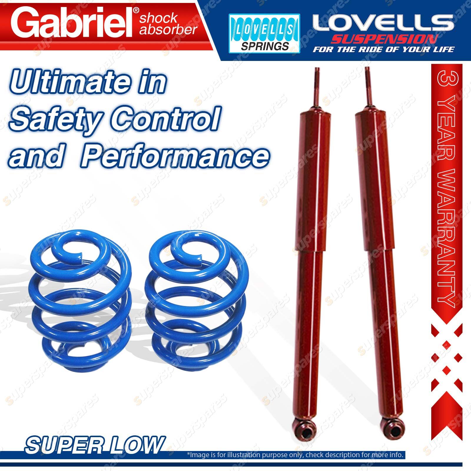 Contents: 2 x Gabriel Guardian Shock Absorbers - Gas 2 x Super Low Lovells Springs Suit: Holden (GMH) Commodore VB 6 Cyl Wagon Incl. Calais with FE2, HD, OE lowered susp. 11/78-3/84 Holden (GMH) Commodore VB 8 Cyl Wagon Incl. Calais with FE2, HD, OE lowered susp. 11/78-3/84 Notes: Lovells: When replacing Commodore standard front top bearing assemblies with urethane alternatives, vehicle ride height can increase up to 20mm |