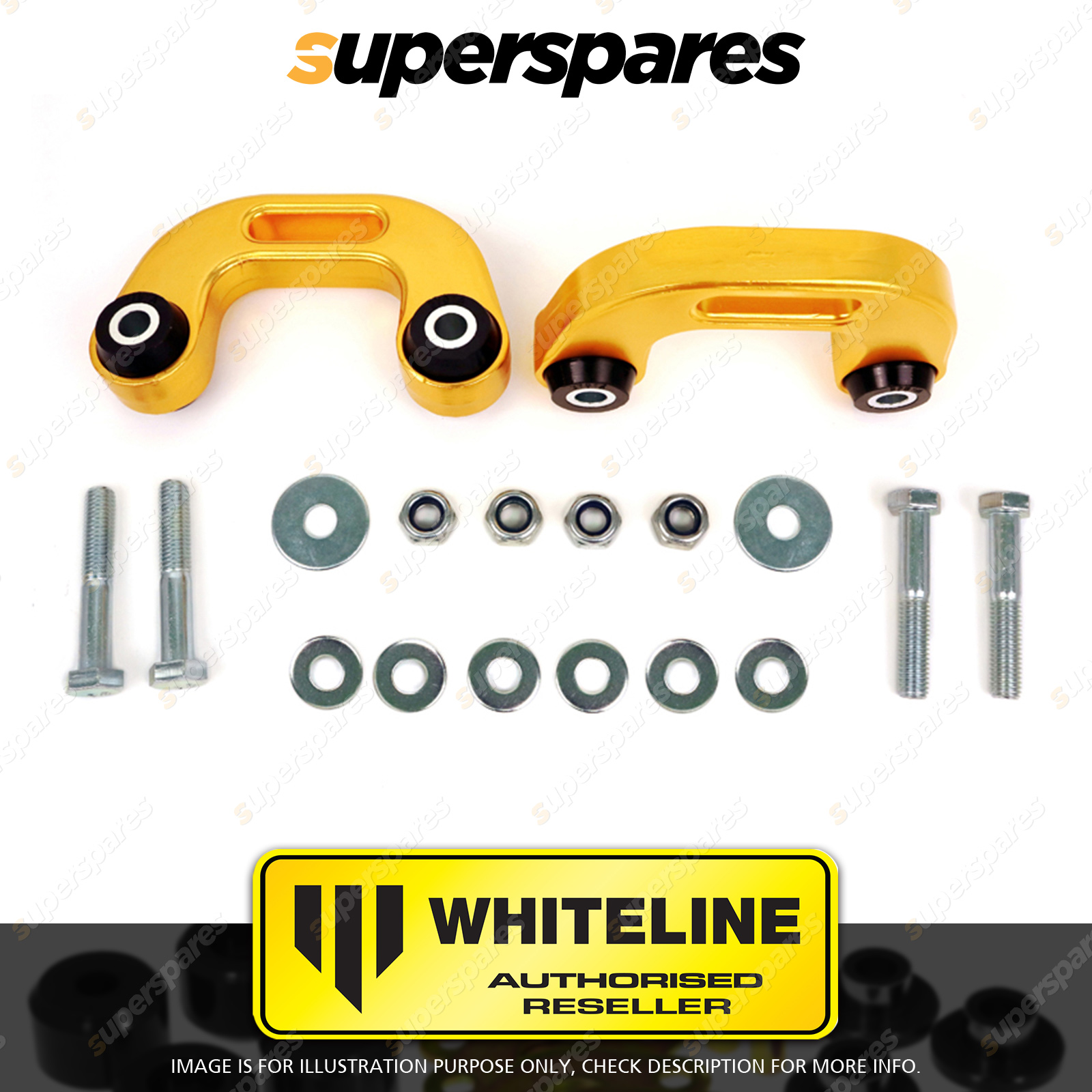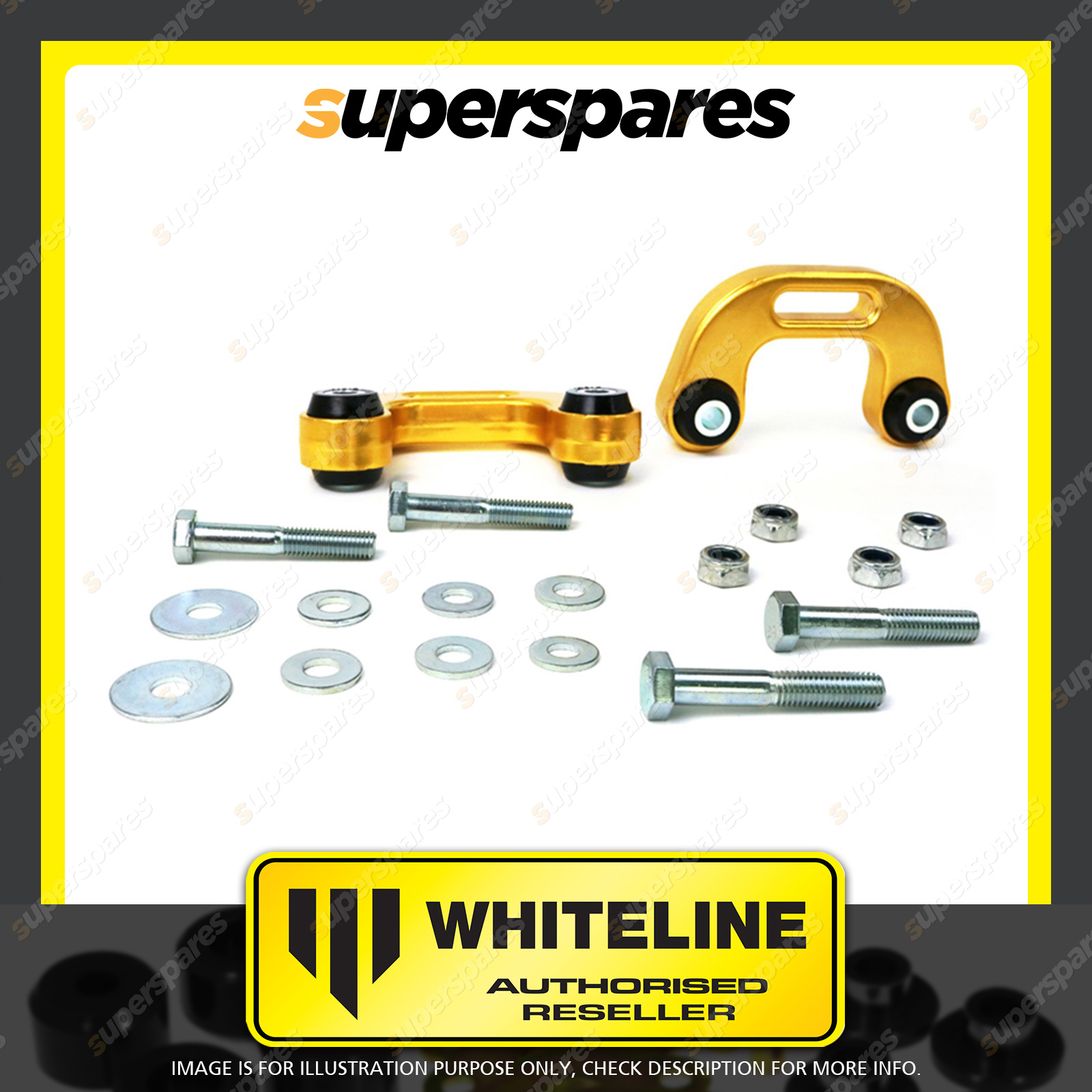 | Contents : Whiteline Rear Sway bar - link Warranty : 3 Year / 60,000Kms Kit Contents : 2 Links, 4 Bolts, 8 Washers, 4 Nuts, Install Guide, Grease | Kit Specifications : Link Type : Bushing |