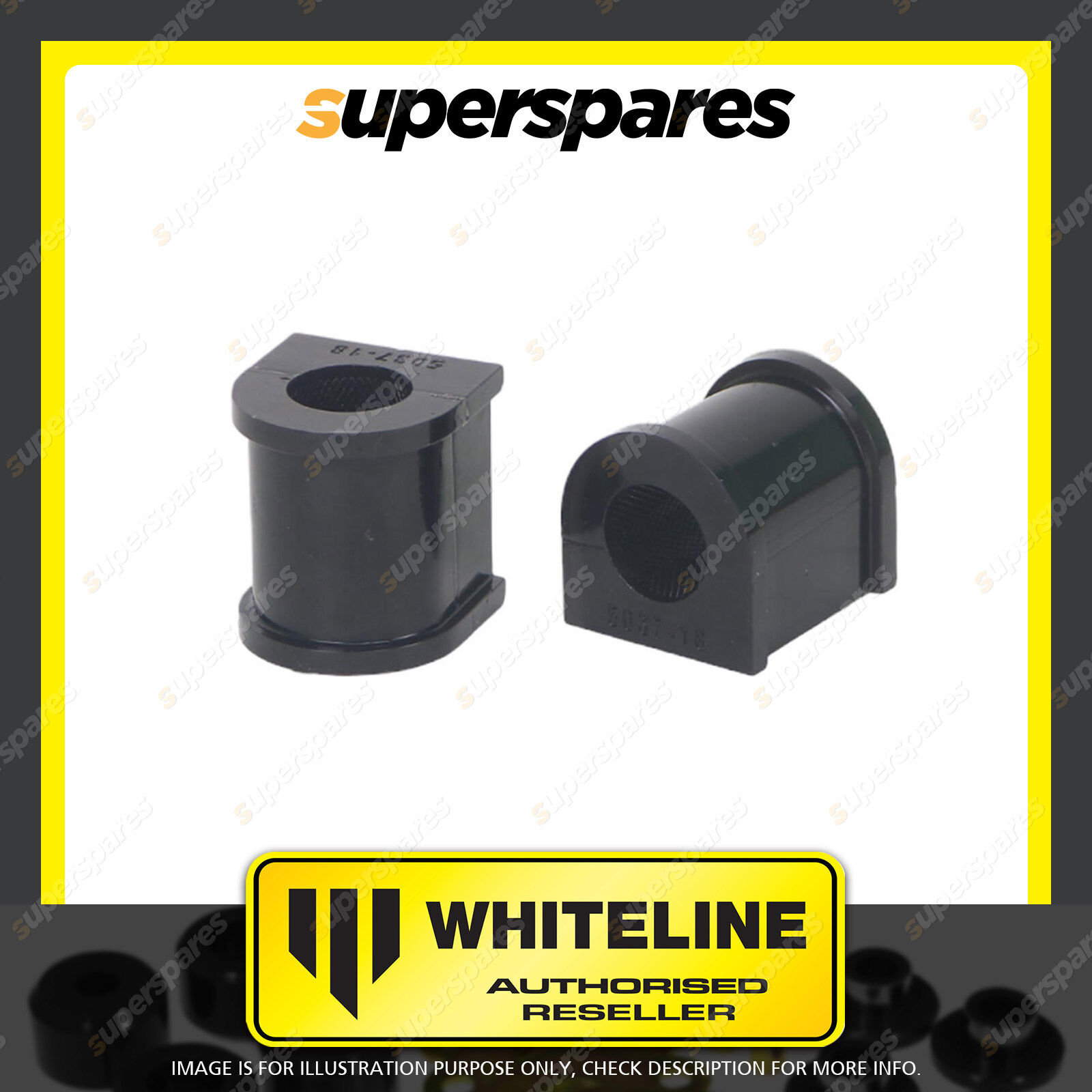 | Contents : Whiteline Rear Sway Bar Mount - Bushing Kit 18mm Warranty : Lifetime Warranty Kit Contents : 2 Bushings |