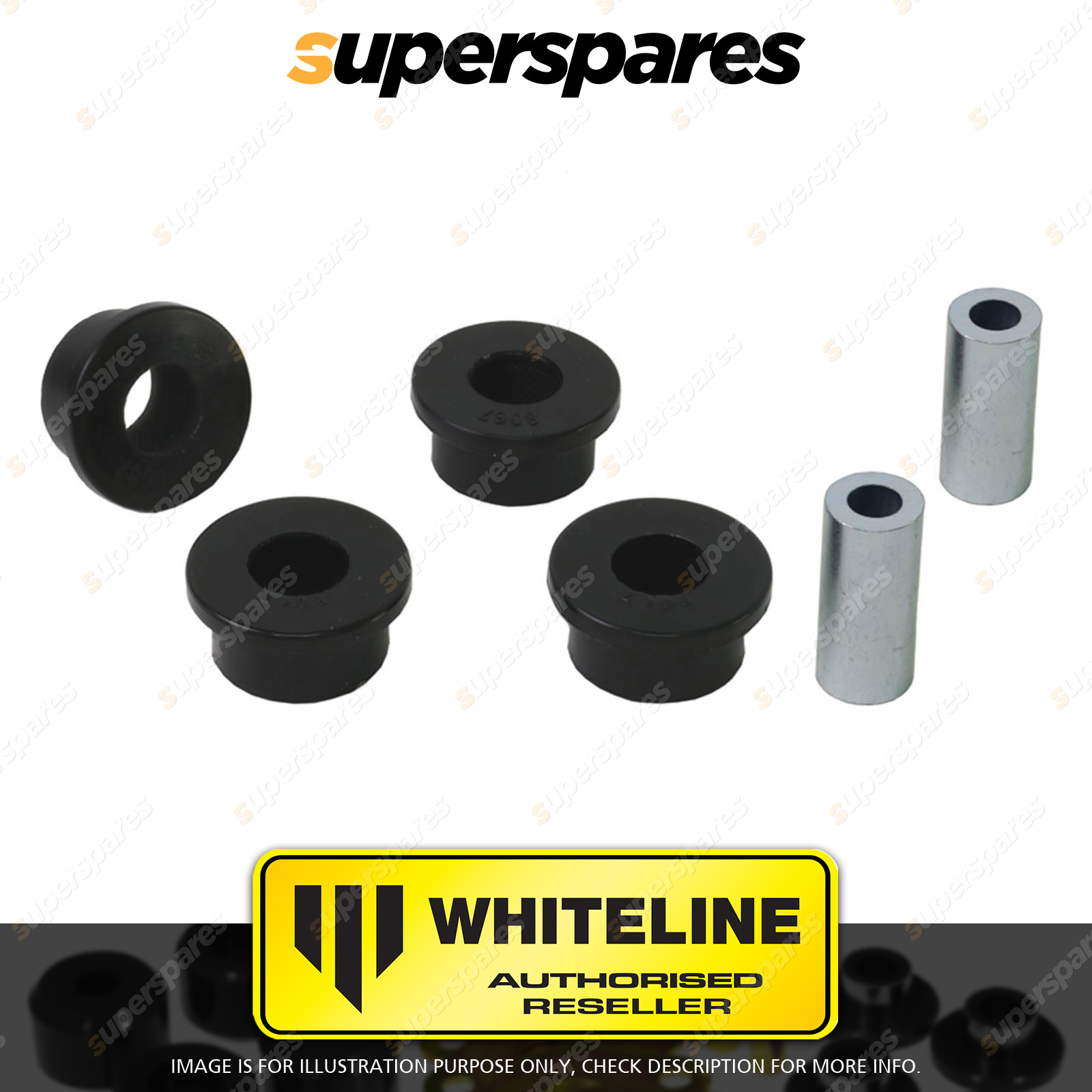 | Contents : Whiteline Rear Trailing arm - lower Rear bushing Warranty : 3 Year / 60,000Kms Kit Contents : 4 Bushings, 2 Tubes, Grease |