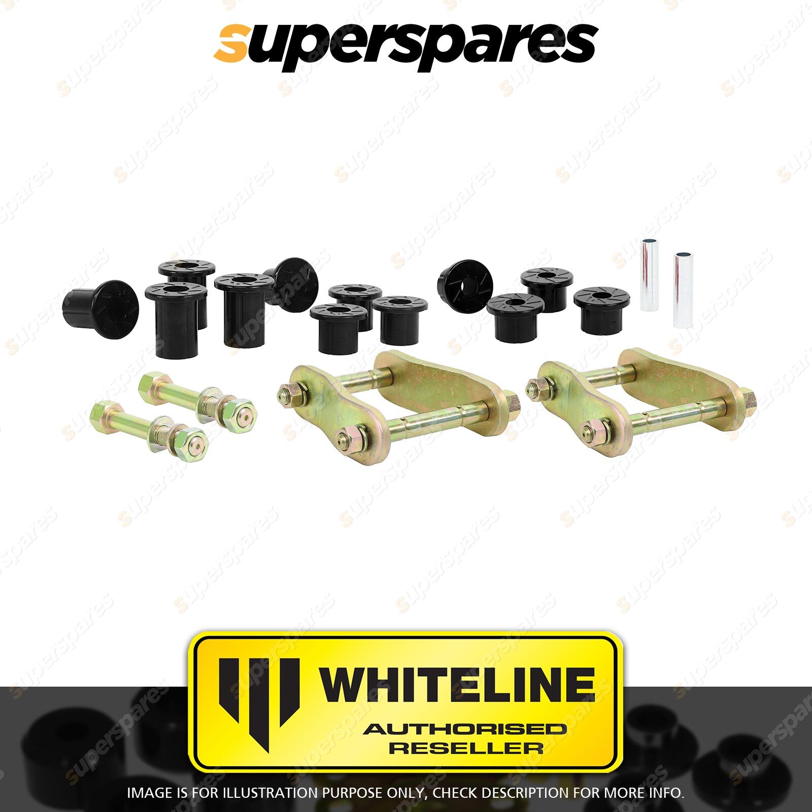 Contents : Whiteline Vehicle Essentials - Shakle Pin Bushing Kit Position : Rear Warranty : 3 Year / 60,000KMS Kit Contents : 2 Shackles, 2 Pins, 12 Bushings, 2 Tubes, Grease |