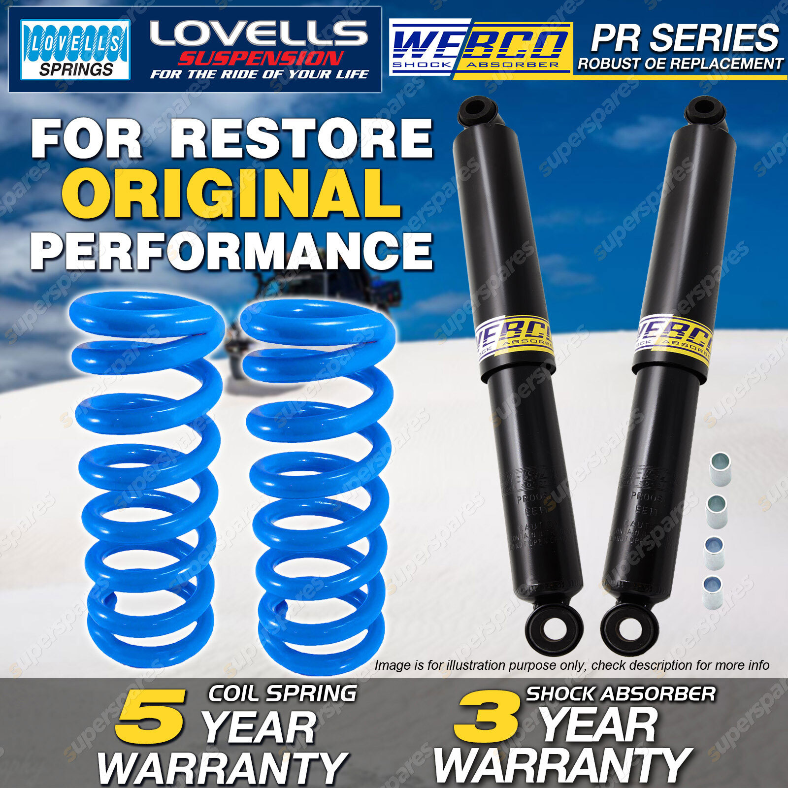 CONTENTS: 2 Pcs Rear Webco Shock Absorbers 2 Pcs Rear Lovells HD Raised Coil Springs( 40-50mm Raised ) SUITS: NISSAN Pathfinder 9/92-10/95 6 Cyl P WD21 Wagon 4 door (*please advise year model, so we can make sure send you the right parts) |