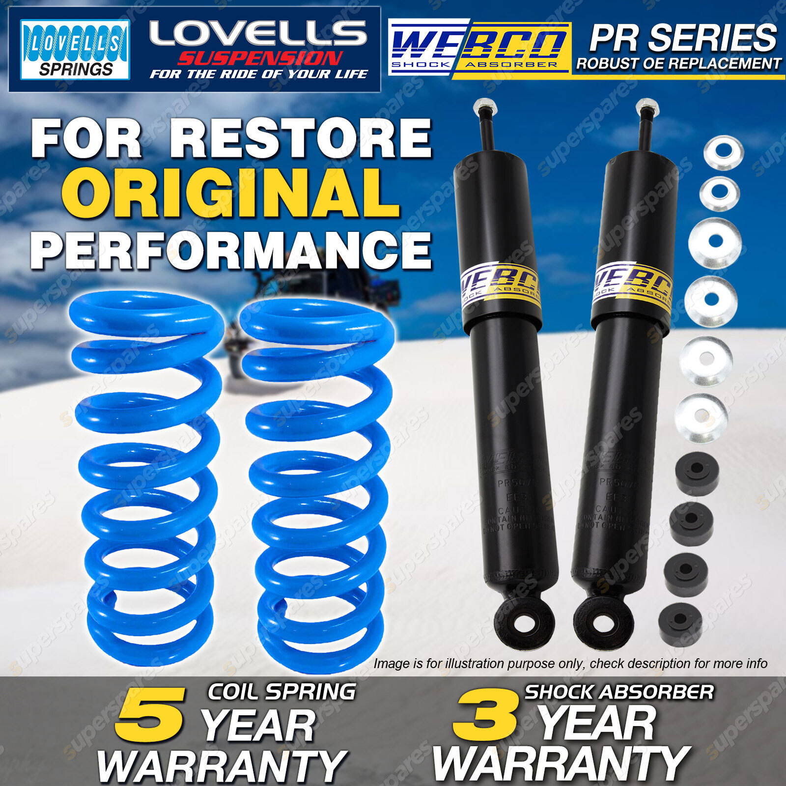 CONTENTS: 2 Pcs Rear Webco Shock Absorbers 2 Pcs Rear Lovells Standard Coil Springs SUITS: MITSUBISHI Pajero 5/00-10/02 All NM LWB MITSUBISHI Pajero 11/02-7/08 P NP,NS LWB MITSUBISHI Pajero 11/02-7/08 D NP,NS LWB MITSUBISHI Pajero 8/08-9/12 All NT, NW LWB (*please advise year model, so we can make sure send you the right parts) |