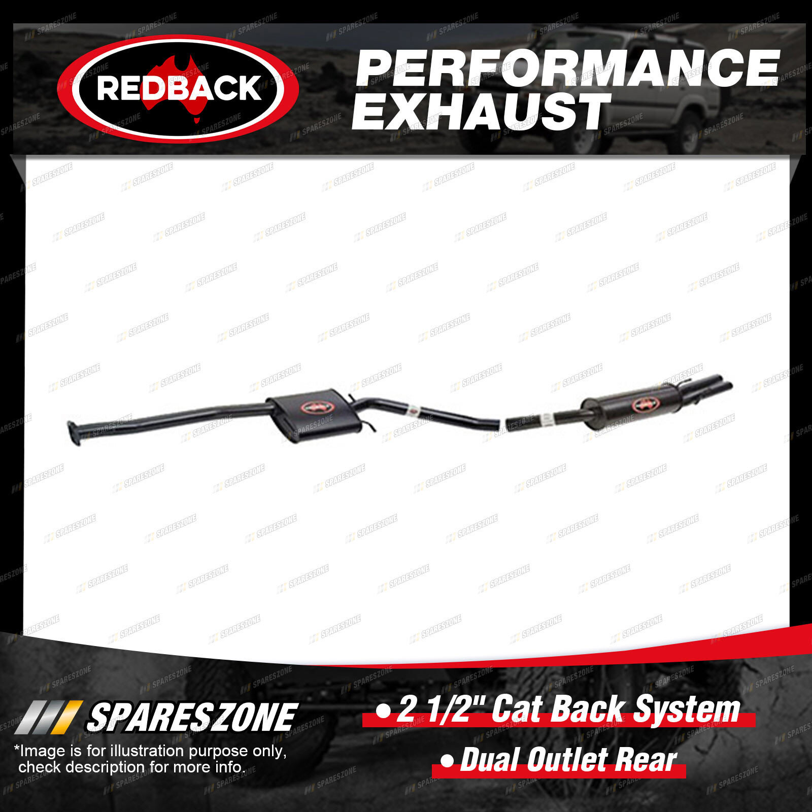 1 x Redback 2 1/2" Cat Back System-Dual Outlet Rear