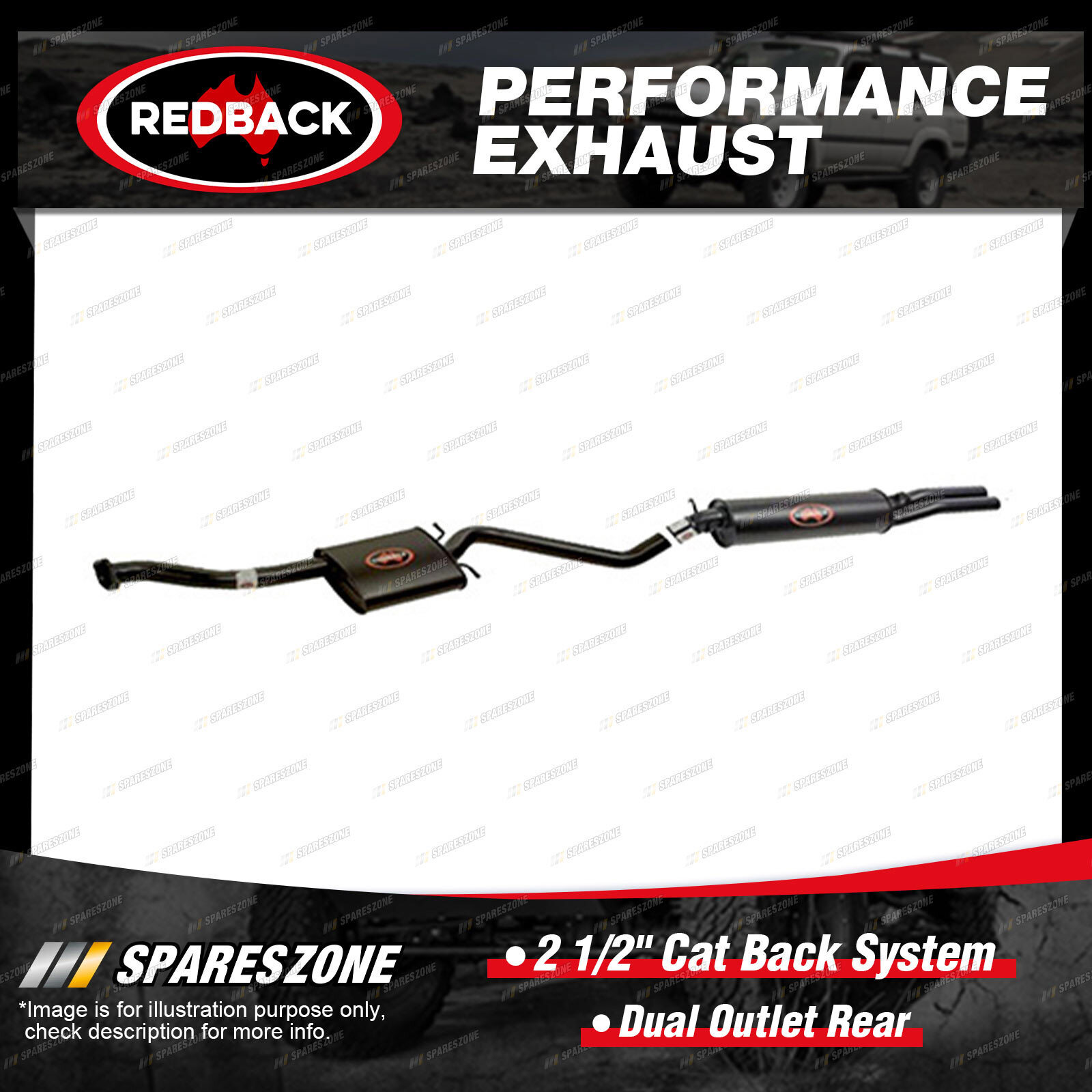 1 x Redback 2 1/2" Cat Back System-Dual Outlet Rear
