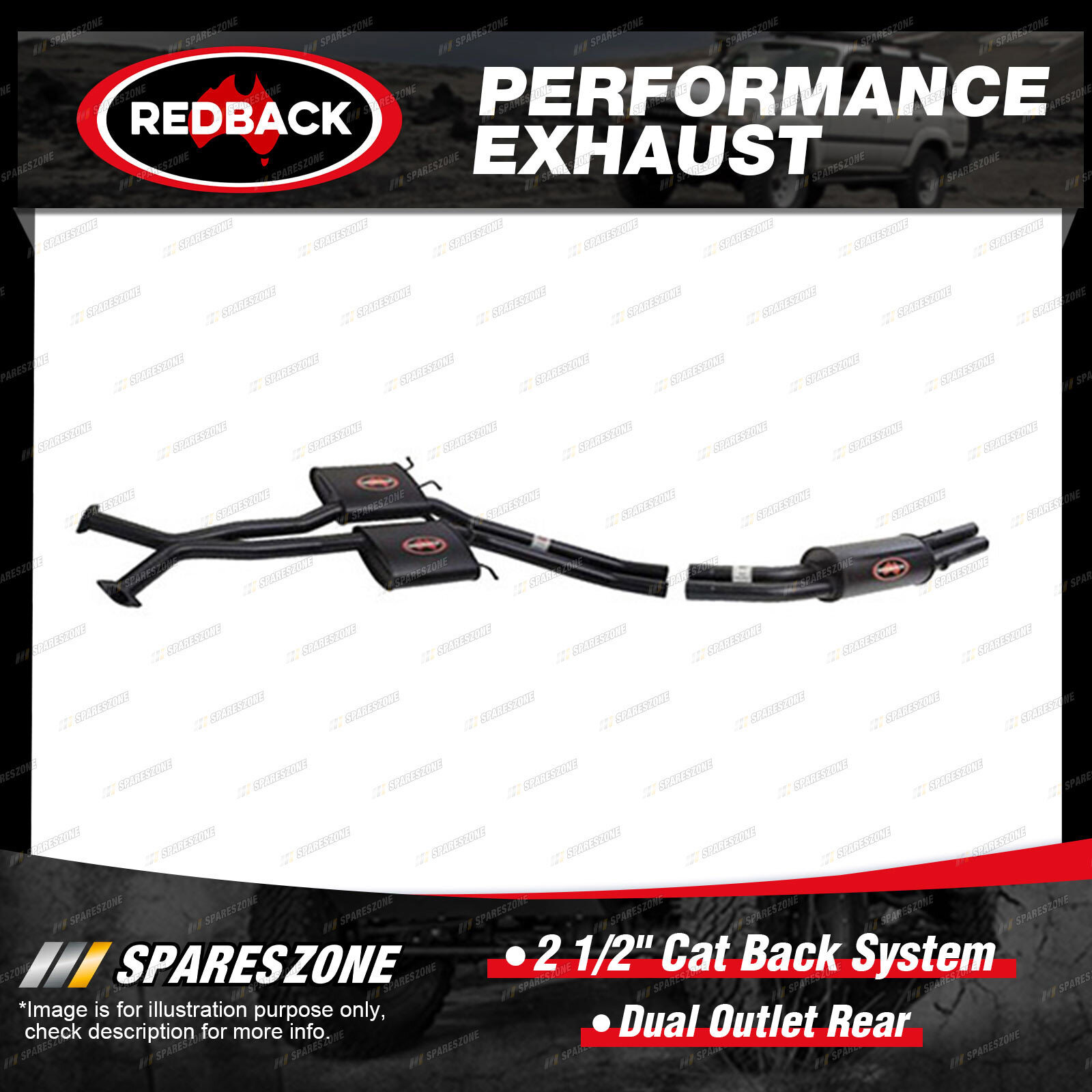1 x Redback 2 1/2" Cat Back System-Dual Outlet Rear