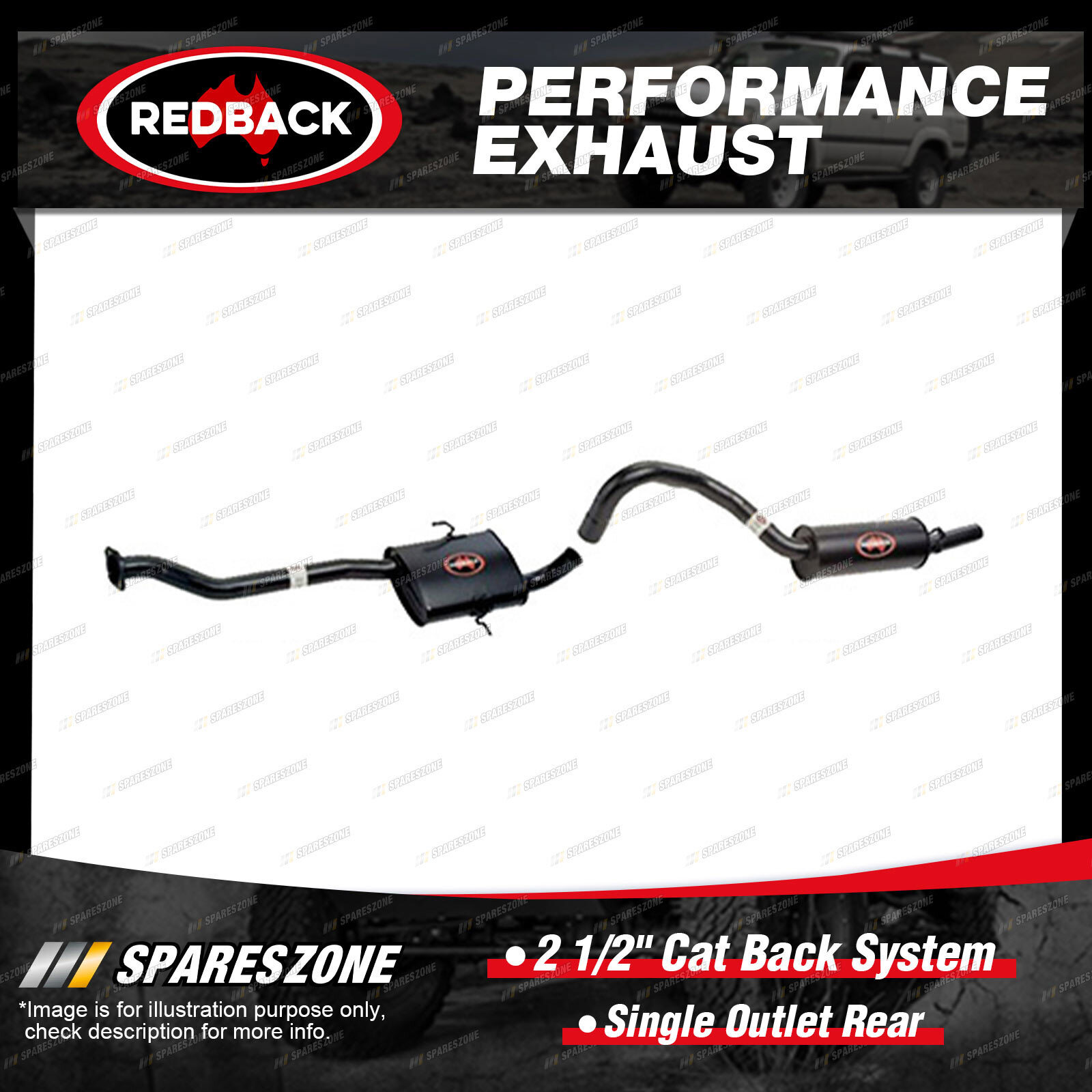 2 1/2" Cat Back System-Single Outlet Rear. Suits models With Solid Axle.