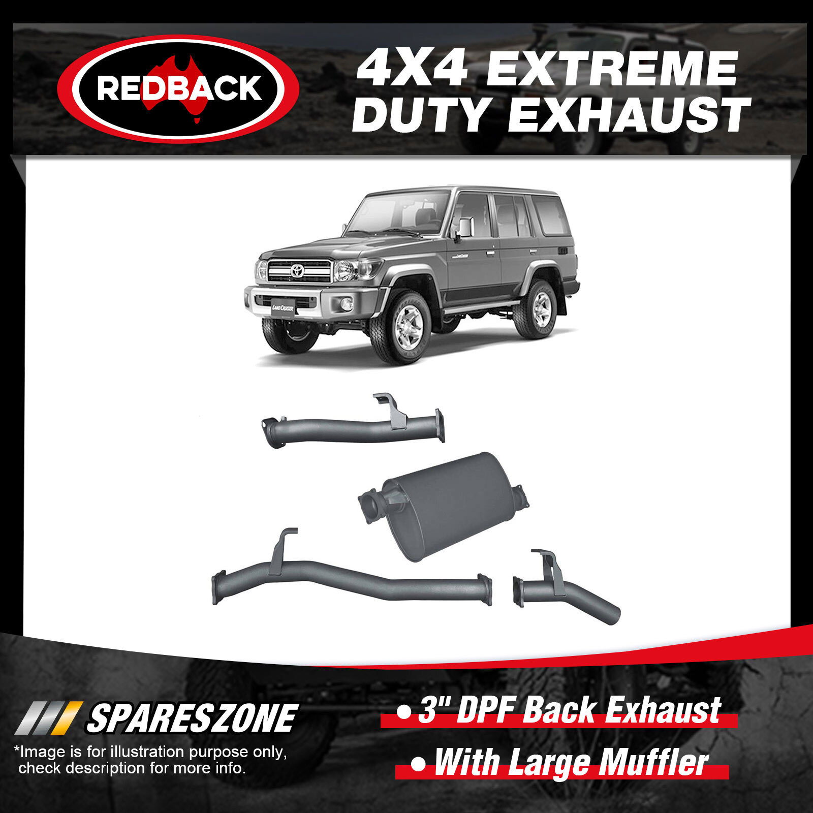 1 x Redback 3" DPF Back Exhaust-With Large Muffler