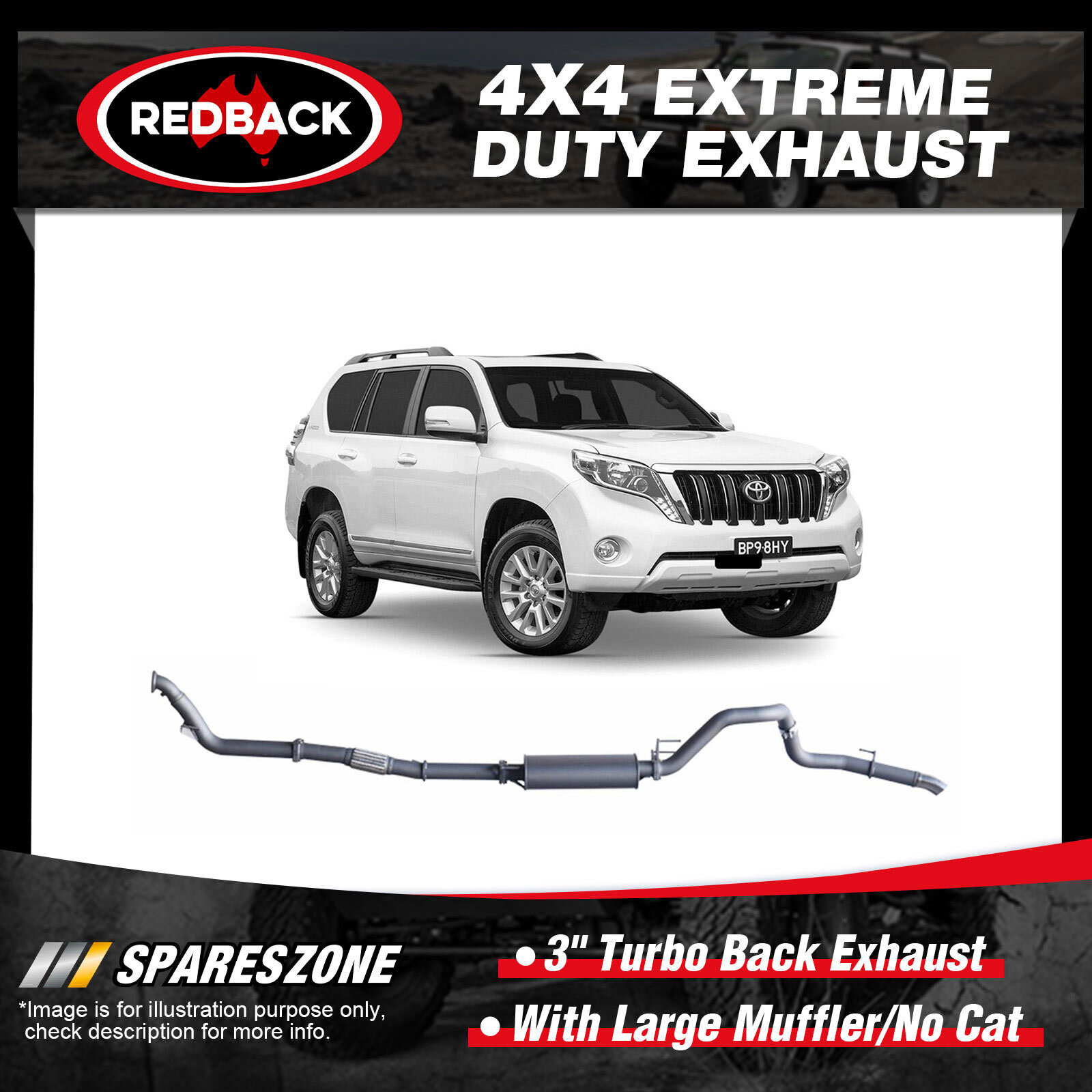 1 x Redback 3" Turbo Back Exhaust-With Large Muffler/No Cat