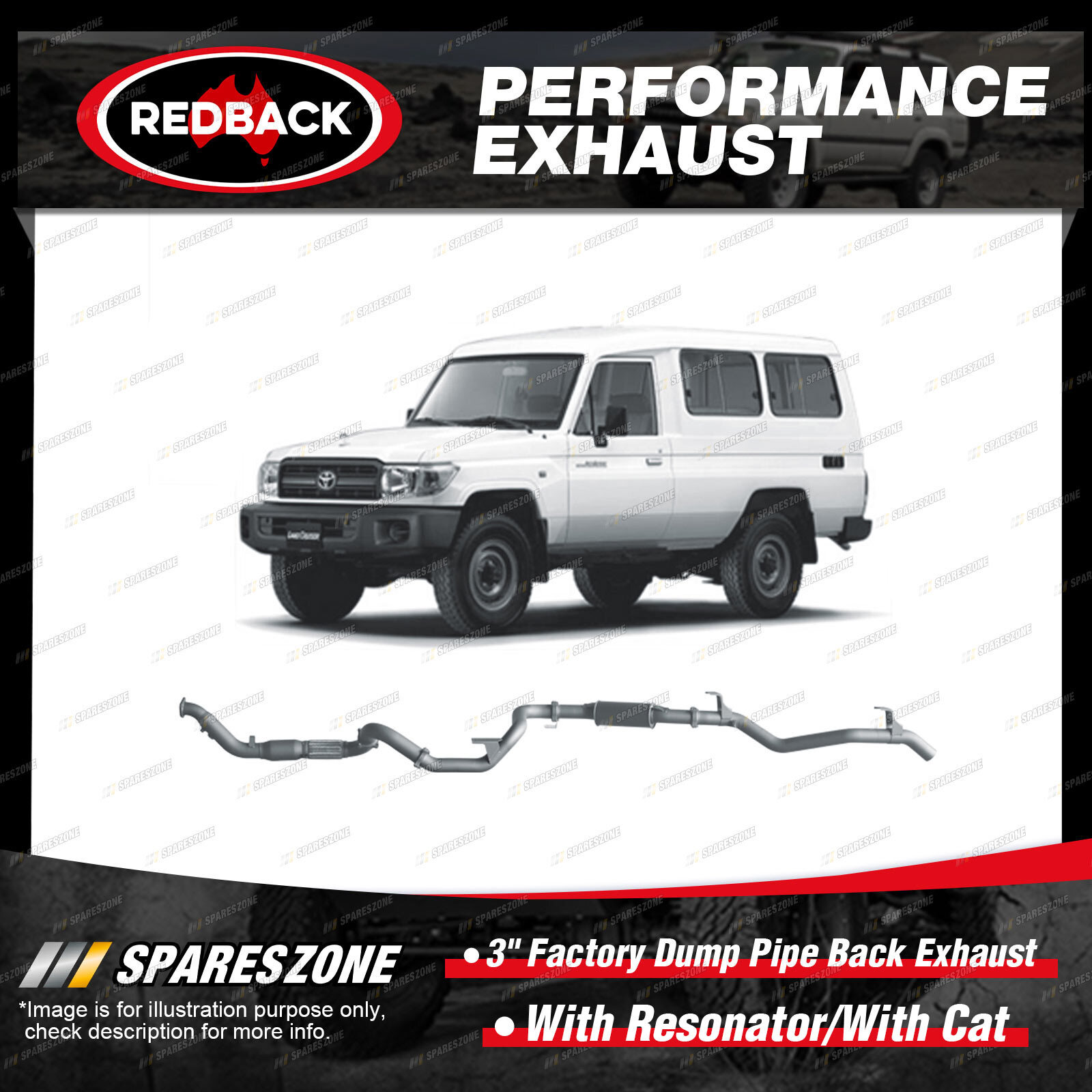 1 x Redback 3" Factory Dump Pipe Back Exhaust-With Resonator/With Cat