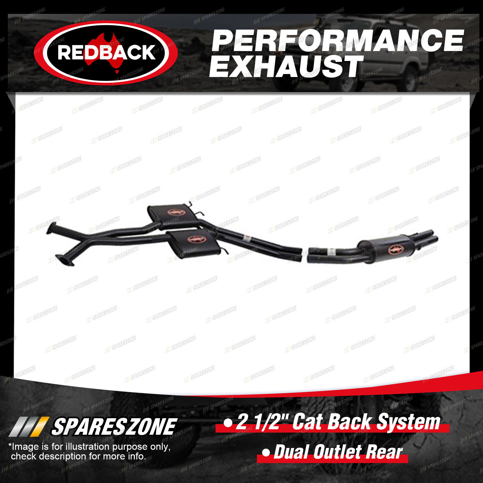 1 x Redback 2 1/2" Cat Back System-Dual Outlet Rear