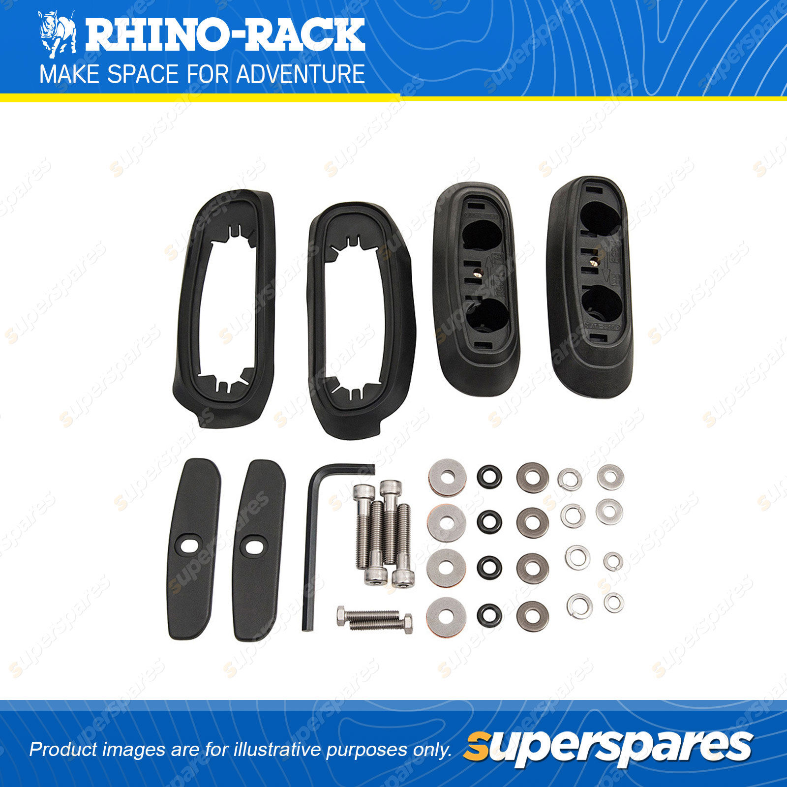 The RCP Base kits are used with Rhino-Rack's range of RC and RV roof rack systems. The kit consists of molded pads and other various components which attach to the fixed mounting points on your vehicle's roof.