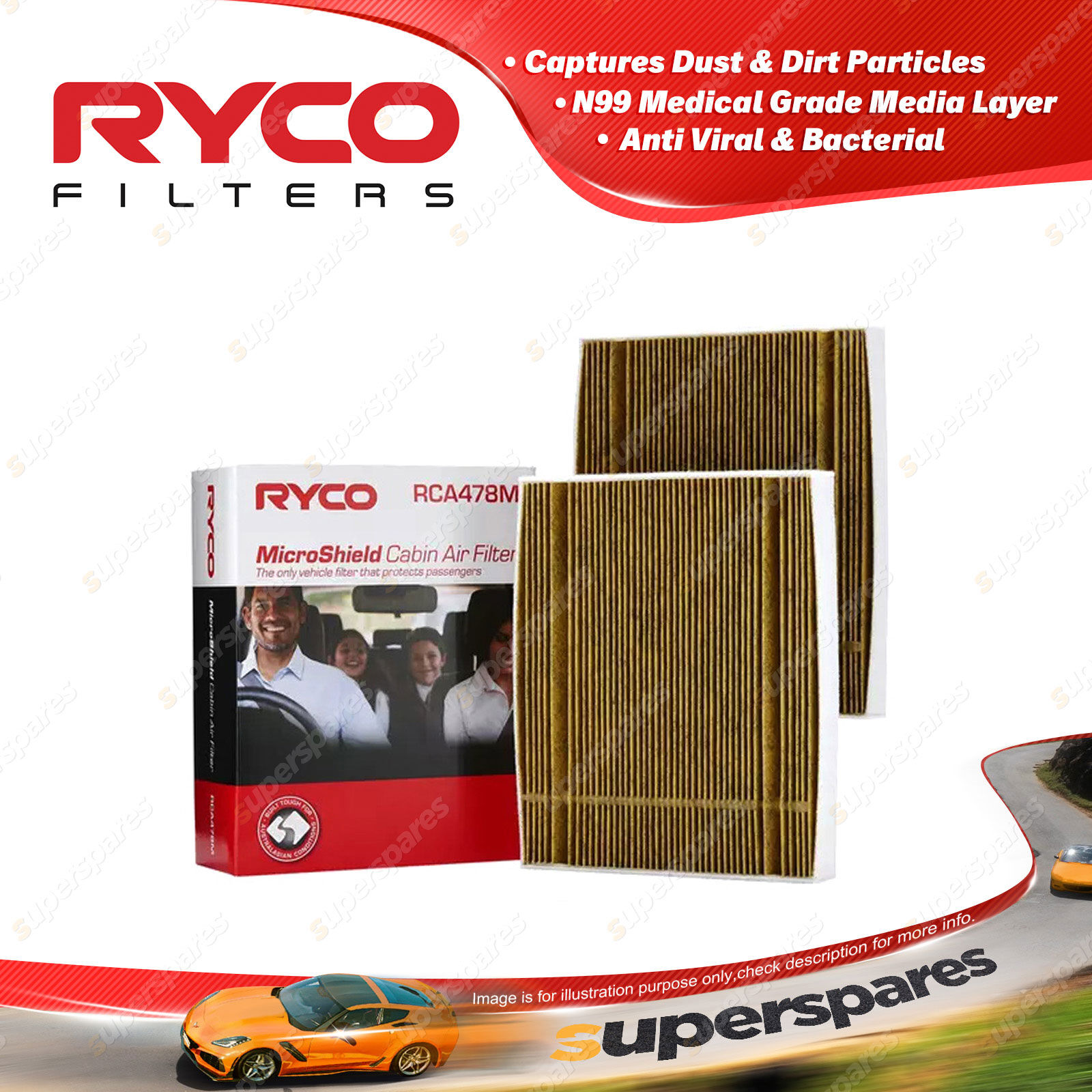 ![]() | ABOUT N99 MICROSHIELD CABIN AIR FILTERS The best in-vehicle air purification against biological contaminants. The biggest threat to safe breathing inside the vehicle can be 40 times smaller than the width of a human hair and invisible. The easiest way to protect a vehicle's passengers from airborne contaminants is to fit N99 MicroShield Cabin Air Filters by Ryco. |
