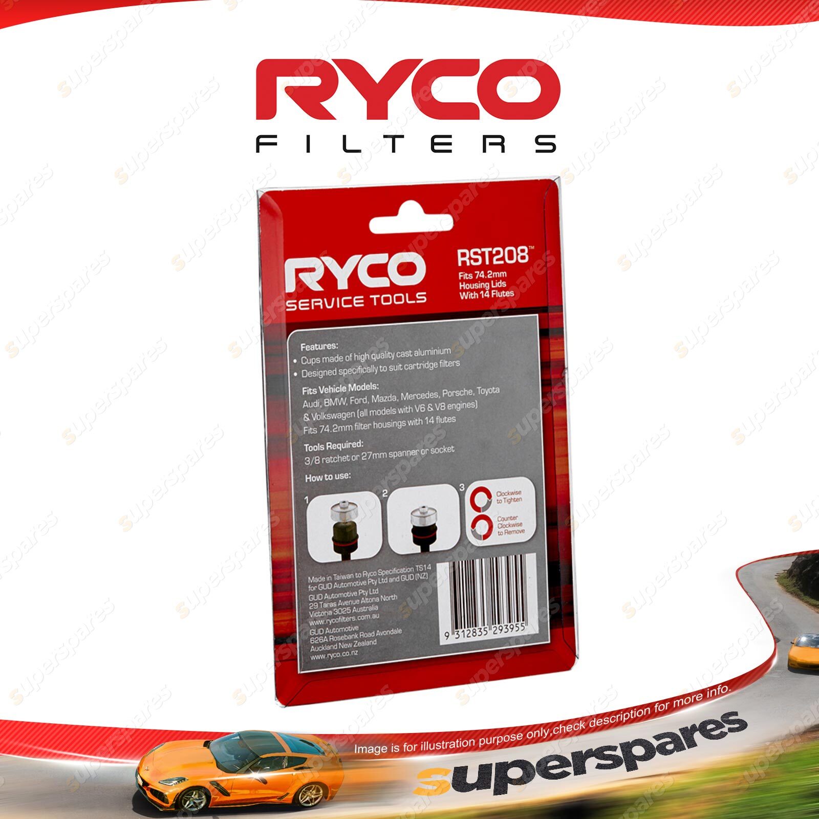| RST208 | Cartridge Filter Cup | Fits 74.2mm filter housings with 14 flutes | Audi, BMW, Ford, Mazda, Mercedes Benz, Porsche, Toyota, Volkswagen (all V6 & V8 engine models) | 3/8" 27mm | 25+ -5Nm |