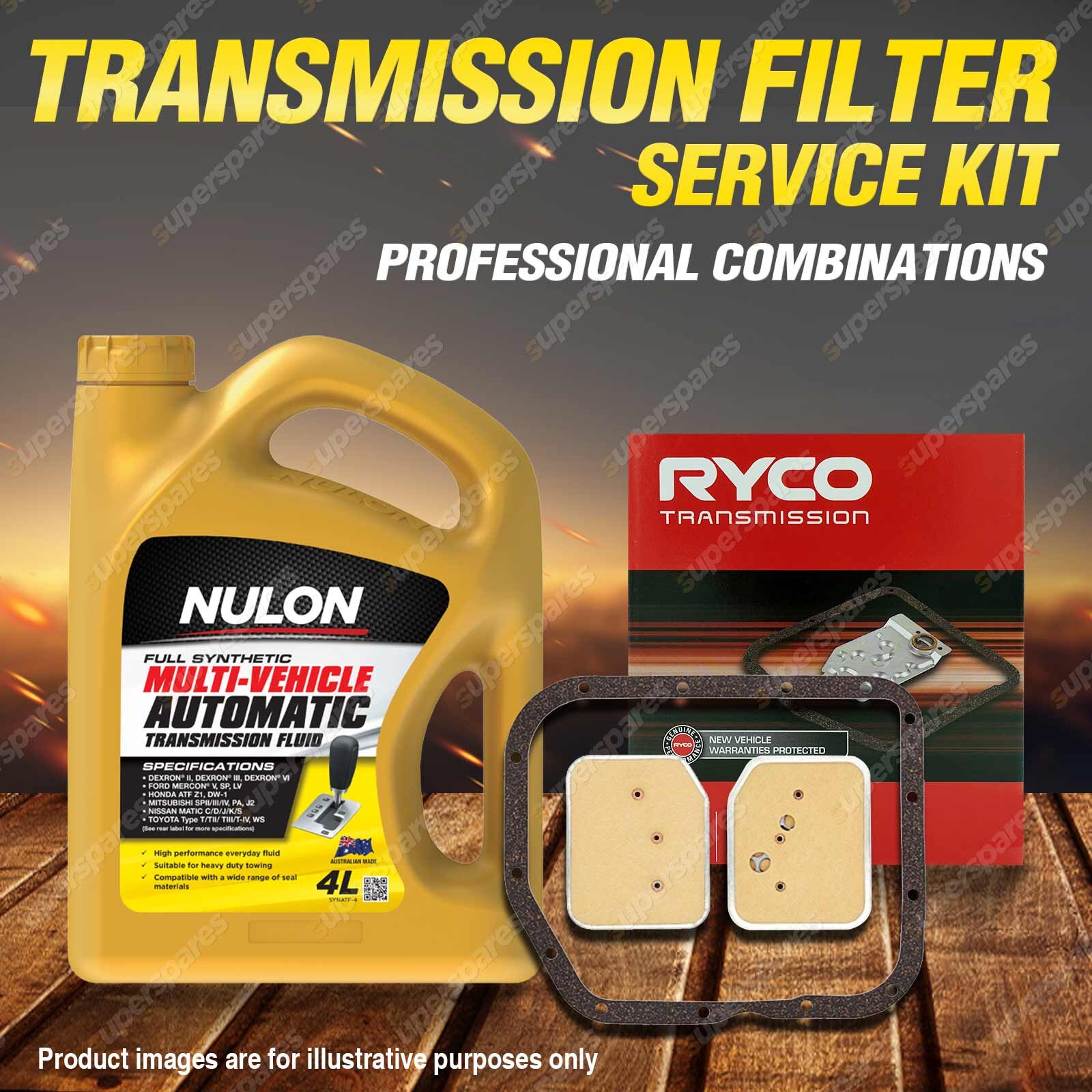 Note: eBay's compatibility table is not accurate in some cases. Please refer to the following information we have provided for you.Copyright © 2014 - 2025 Superspares. All rights reserved. Content : 1 x Ryco Transmission Filter Service Kit 1 x Nulon Full Synthetic Multi Vehicle Automatic Transmission Fluid (4L) Suit : |
