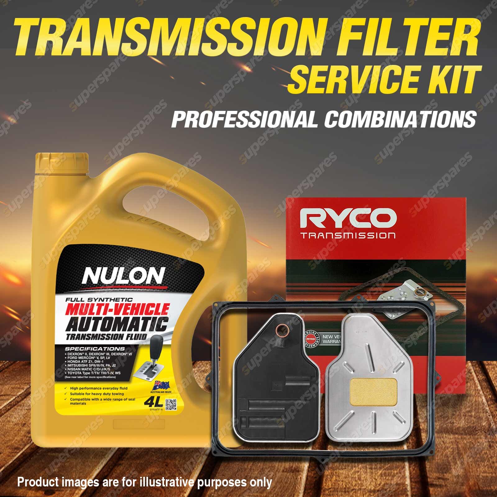 Note: eBay's compatibility table is not accurate in some cases. Please refer to the following information we have provided for you.Copyright © 2014 - 2025 Superspares. All rights reserved. Content : 1 x Ryco Transmission Filter Service Kit 1 x Nulon Full Synthetic Multi Vehicle Automatic Transmission Fluid (4L) Suit : |