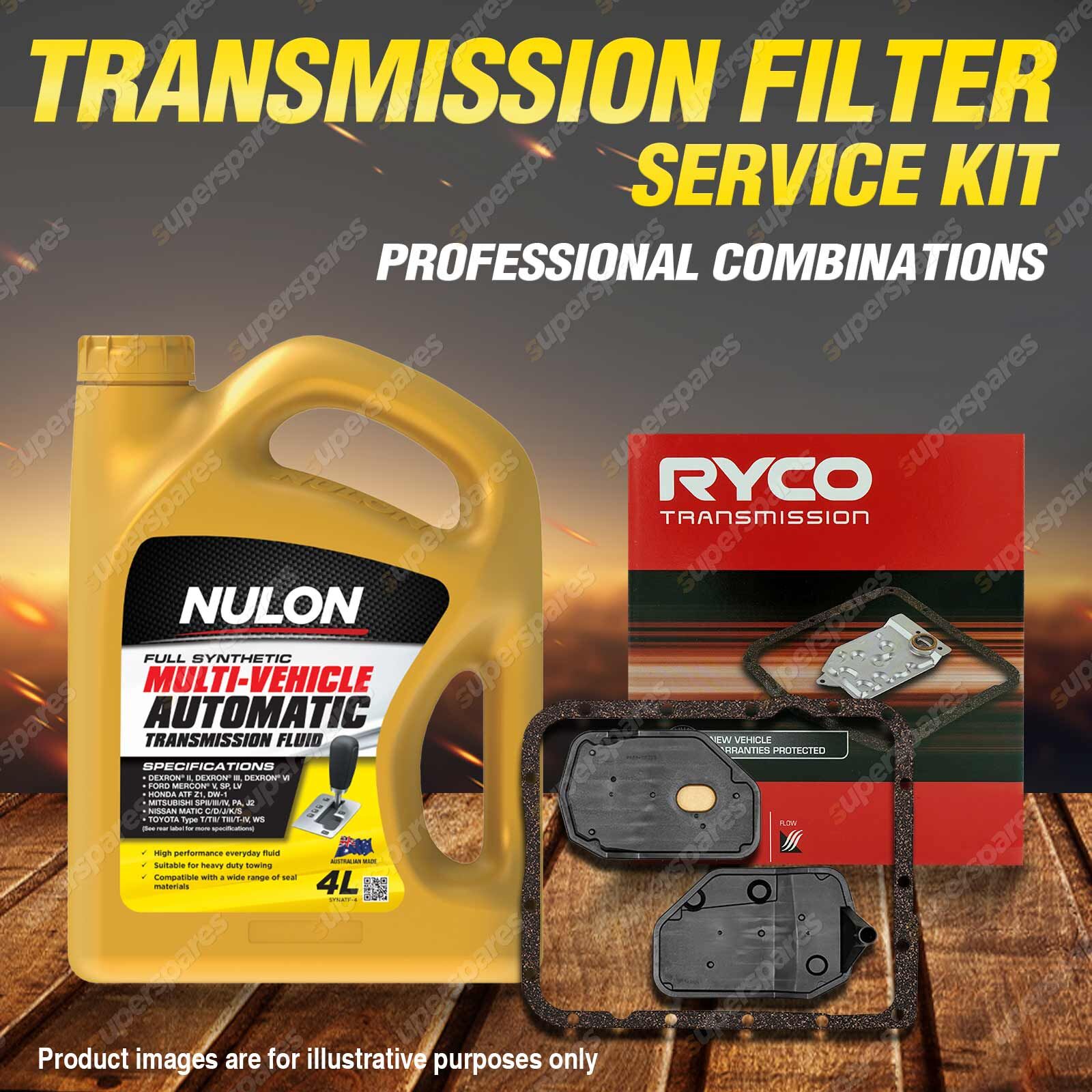 Note: eBay's compatibility table is not accurate in some cases. Please refer to the following information we have provided for you.Copyright © 2014 - 2025 Superspares. All rights reserved. Content : 1 x Ryco Transmission Filter Service Kit 1 x Nulon Full Synthetic Multi Vehicle Automatic Transmission Fluid (4L) Suit : |