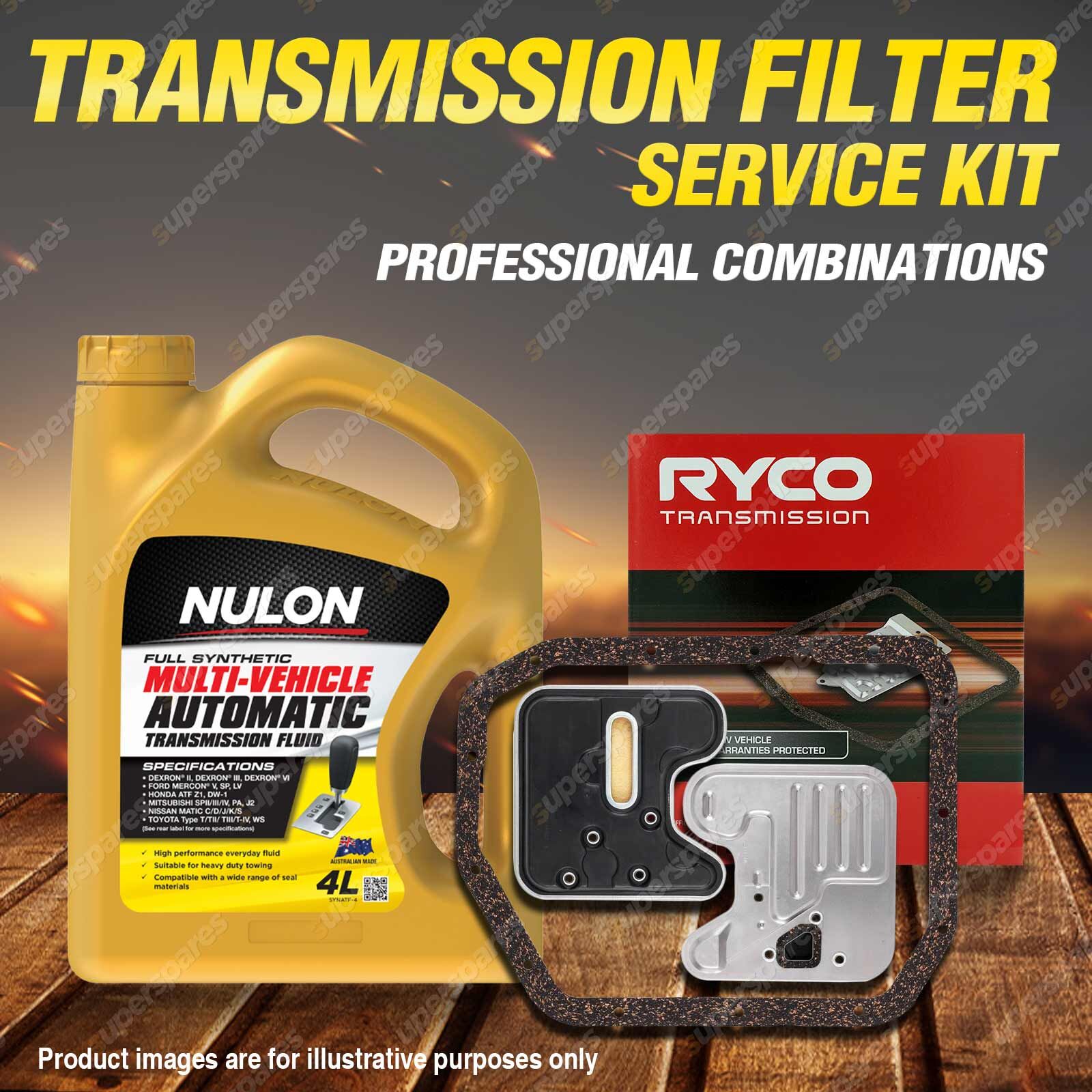 Note: eBay's compatibility table is not accurate in some cases. Please refer to the following information we have provided for you.Copyright © 2014 - 2025 Superspares. All rights reserved. Content : 1 x Ryco Transmission Filter Service Kit 1 x Nulon Full Synthetic Multi Vehicle Automatic Transmission Fluid (4L) Suit : |