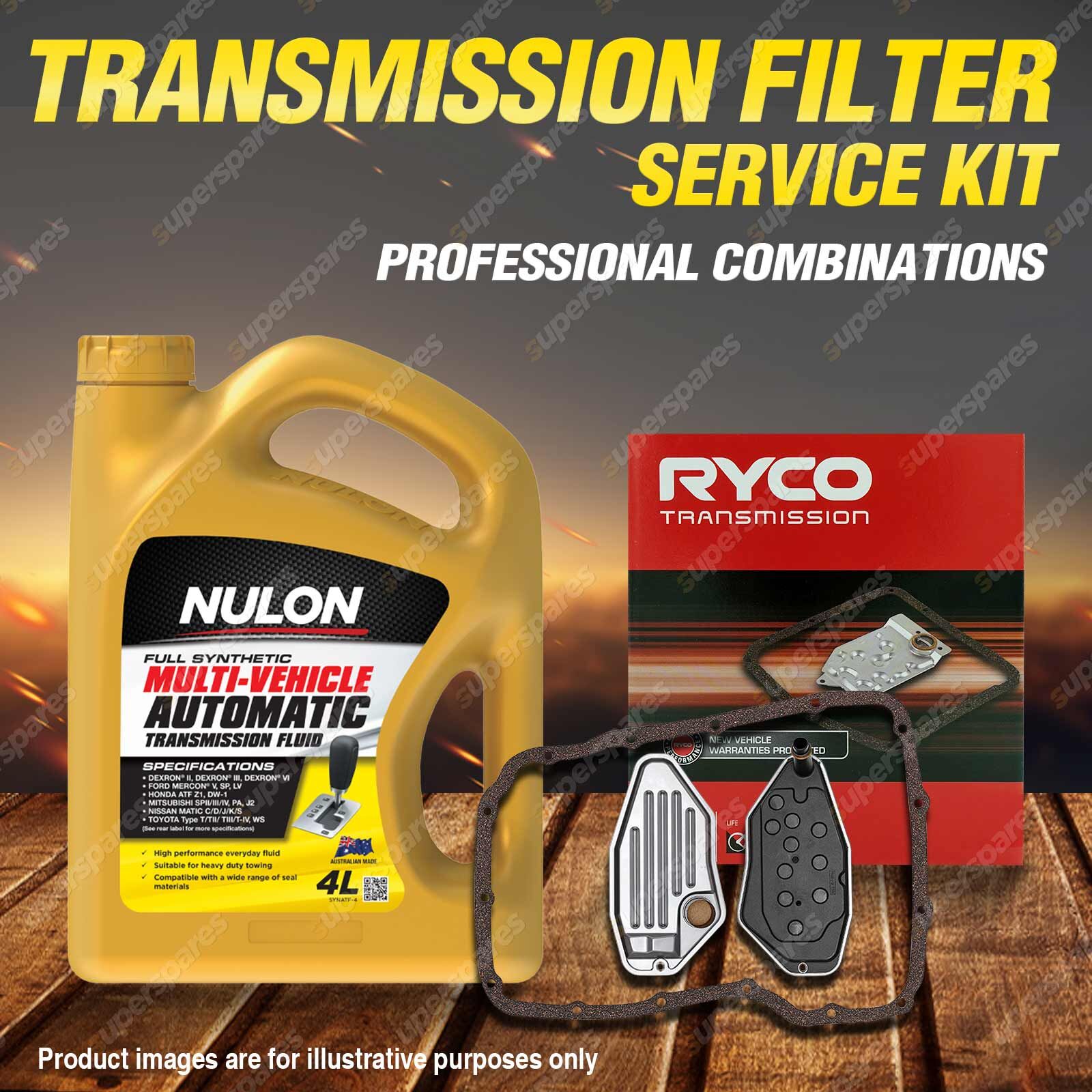 Note: eBay's compatibility table is not accurate in some cases. Please refer to the following information we have provided for you.Copyright © 2014 - 2025 Superspares. All rights reserved. Content : 1 x Ryco Transmission Filter Service Kit 1 x Nulon Full Synthetic Multi Vehicle Automatic Transmission Fluid (4L) Suit : |