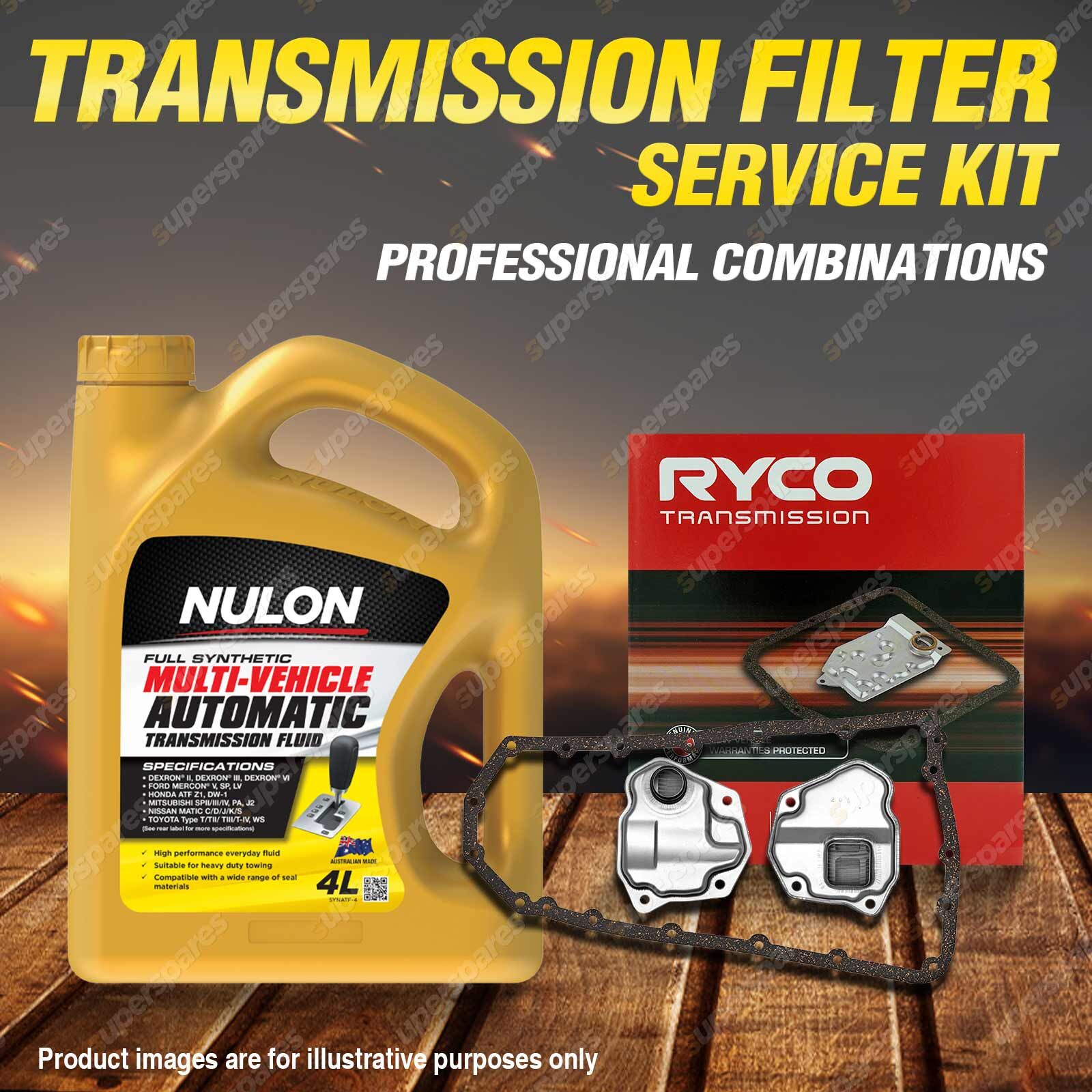 Note: eBay's compatibility table is not accurate in some cases. Please refer to the following information we have provided for you.Copyright © 2014 - 2025 Superspares. All rights reserved. Content : 1 x Ryco Transmission Filter Service Kit 1 x Nulon Full Synthetic Multi Vehicle Automatic Transmission Fluid (4L) Suit : |